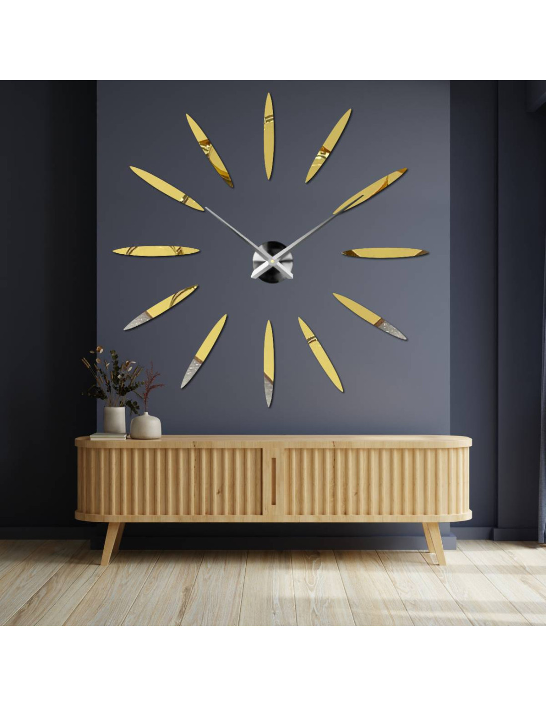 Luxusné nalepovacie nástenné hodiny zo zlatého zrkadlového plexiskla sú ideálnym doplnkom do každého moderného interiéru.