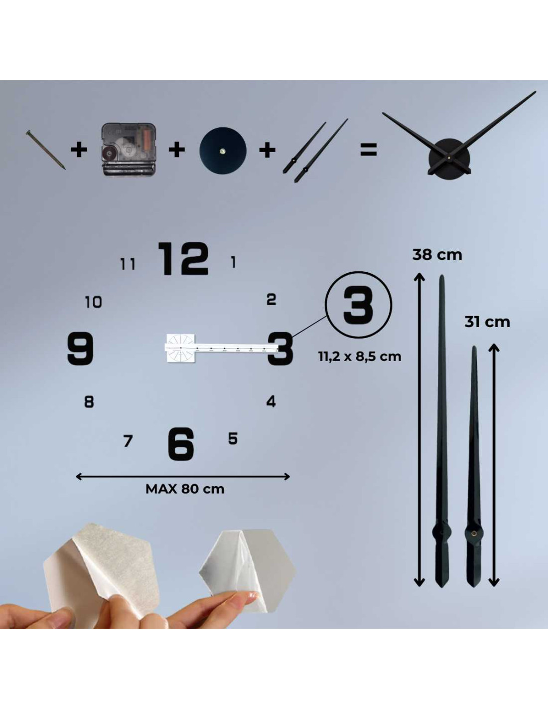- Číslice ciferníka majú samolepiacu vrstvu, takže inštalácia je rýchla a bez vŕtania.