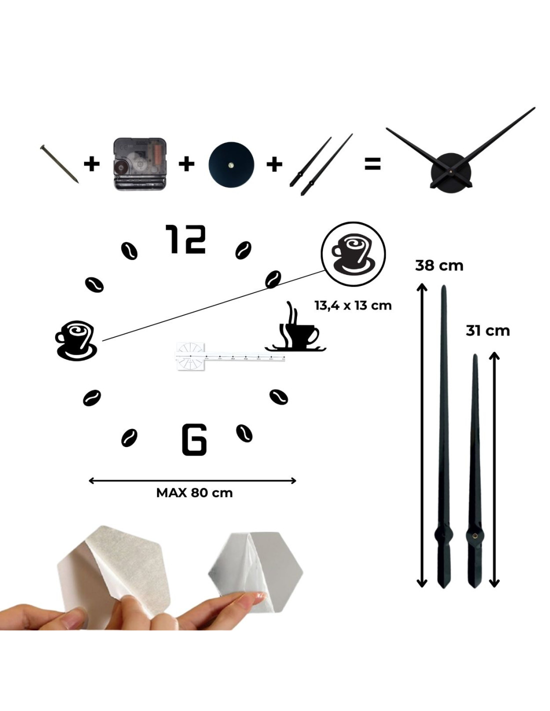 - Číslice ciferníka majú samolepiacu vrstvu, takže inštalácia je rýchla a bez vŕtania.