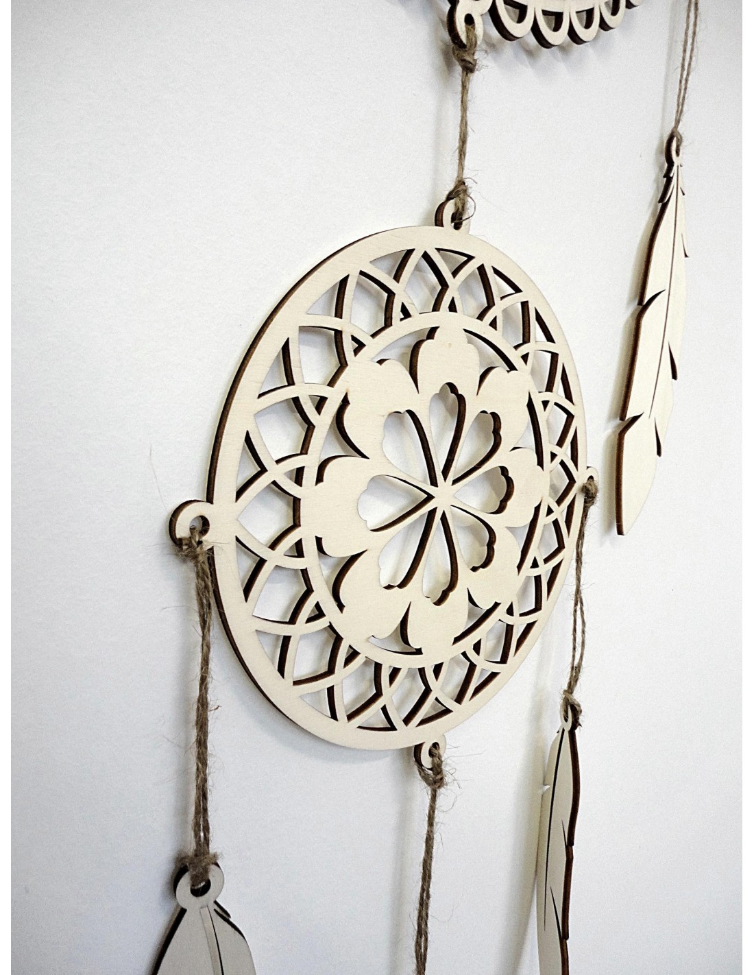 Celý lapač snov je starostlivo vyrezaný z kvalitnej topoľovej preglejky s hrúbkou 5 mm.
