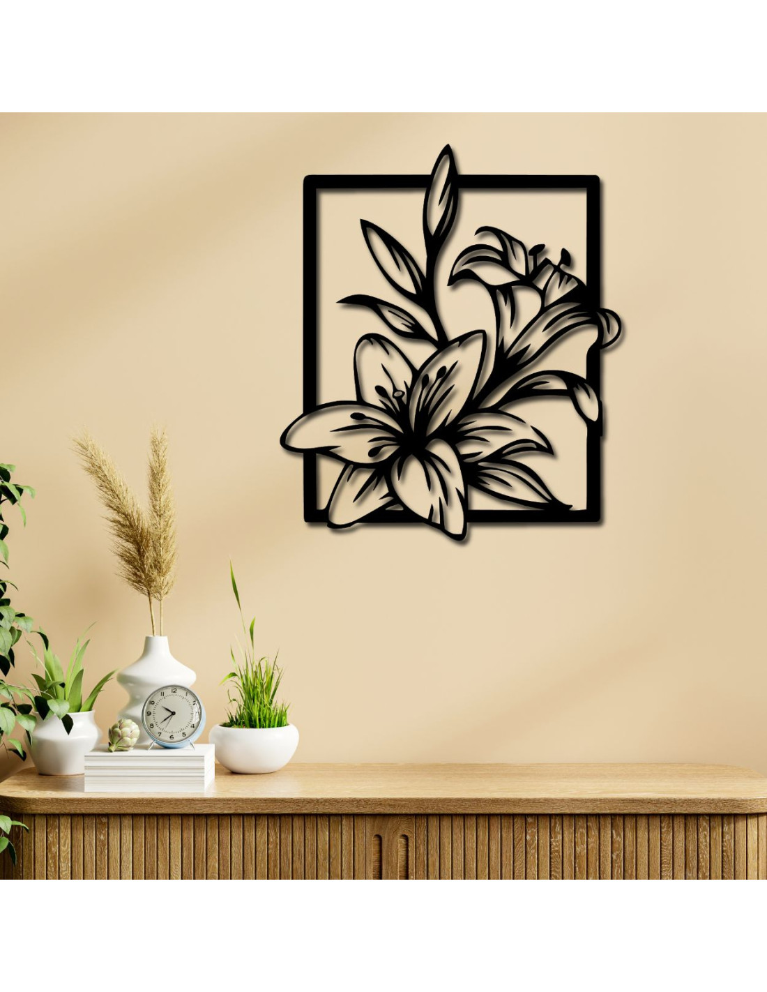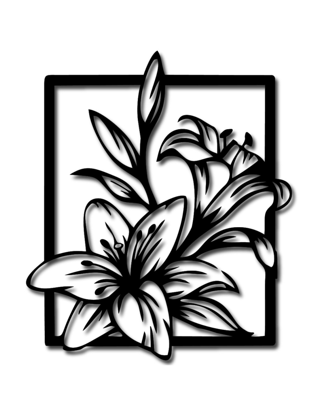 Obraz s kvetinovým motívom ľalie zobrazený v jednoduchom dizajne so štvorcovým rámom.