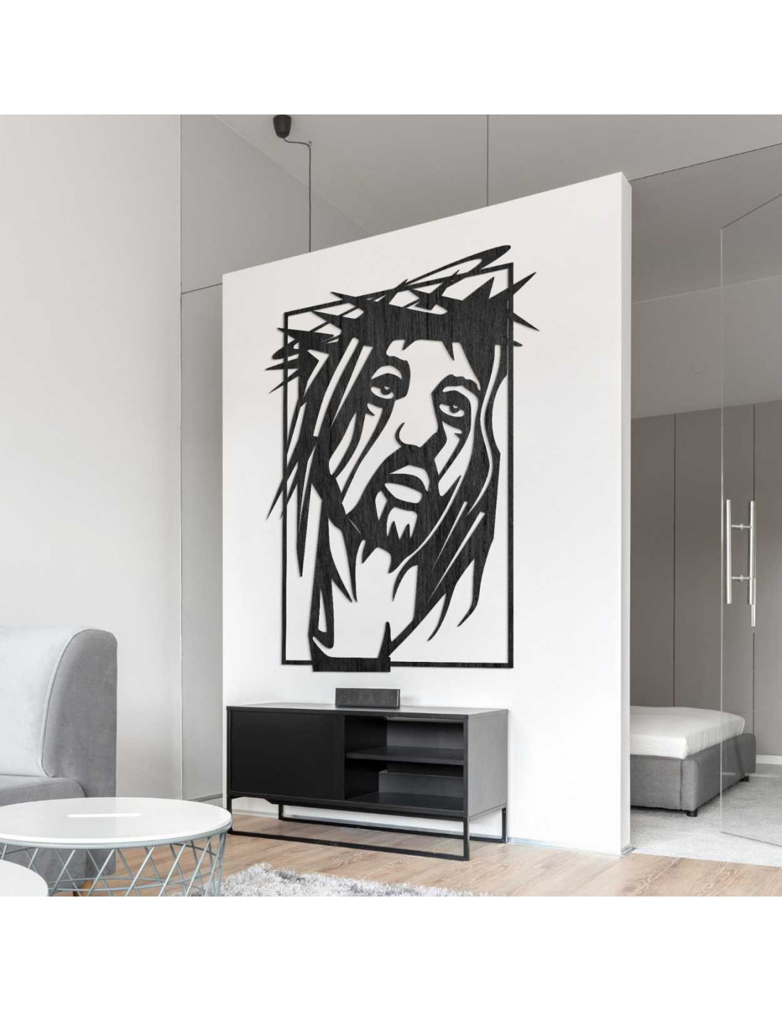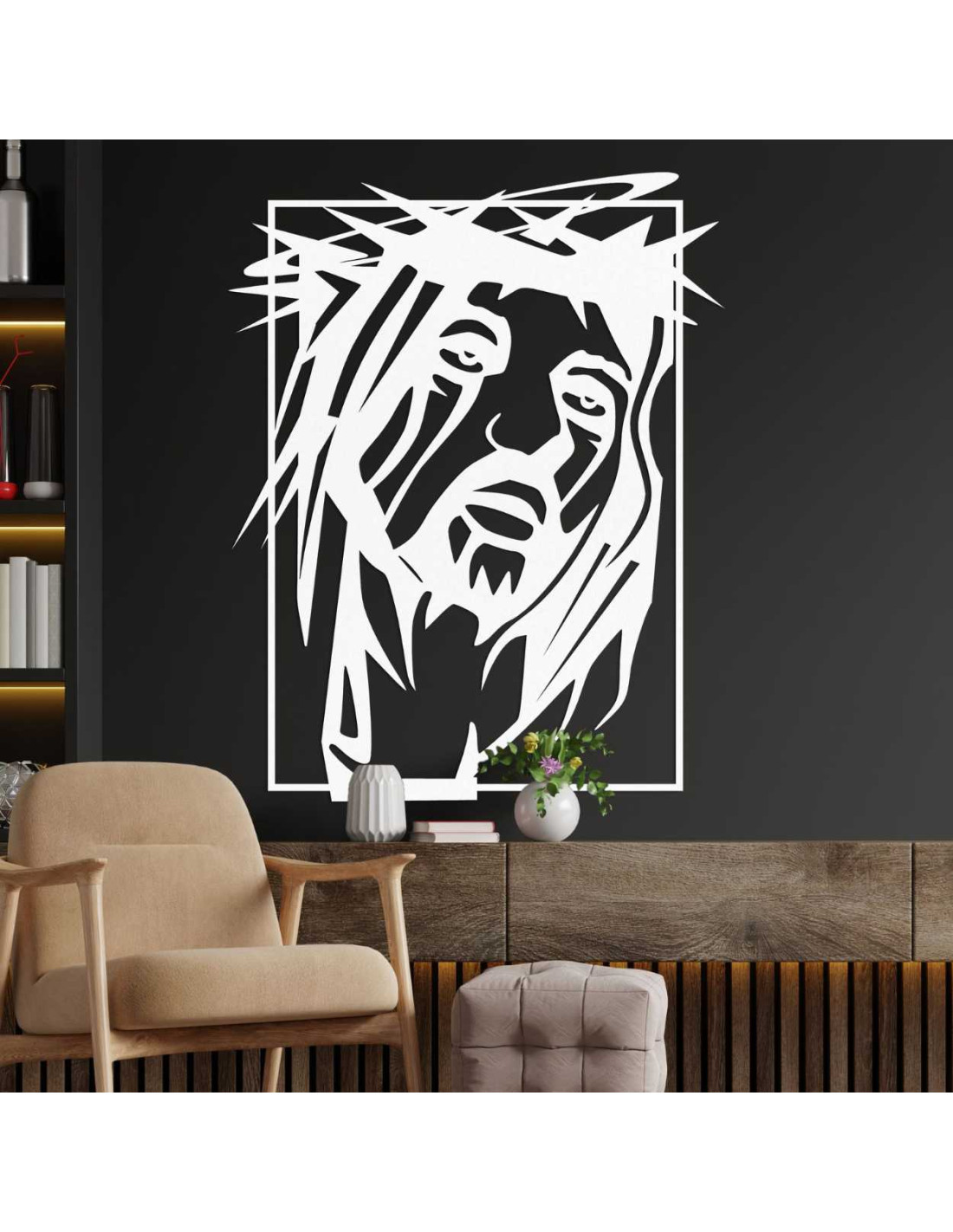 Tvarovo výrazná dekorácia v modernom spracovaní zachytáva silu kresťanskej viery prostredníctvom minimalistického výrazu a práce s priestorom.
