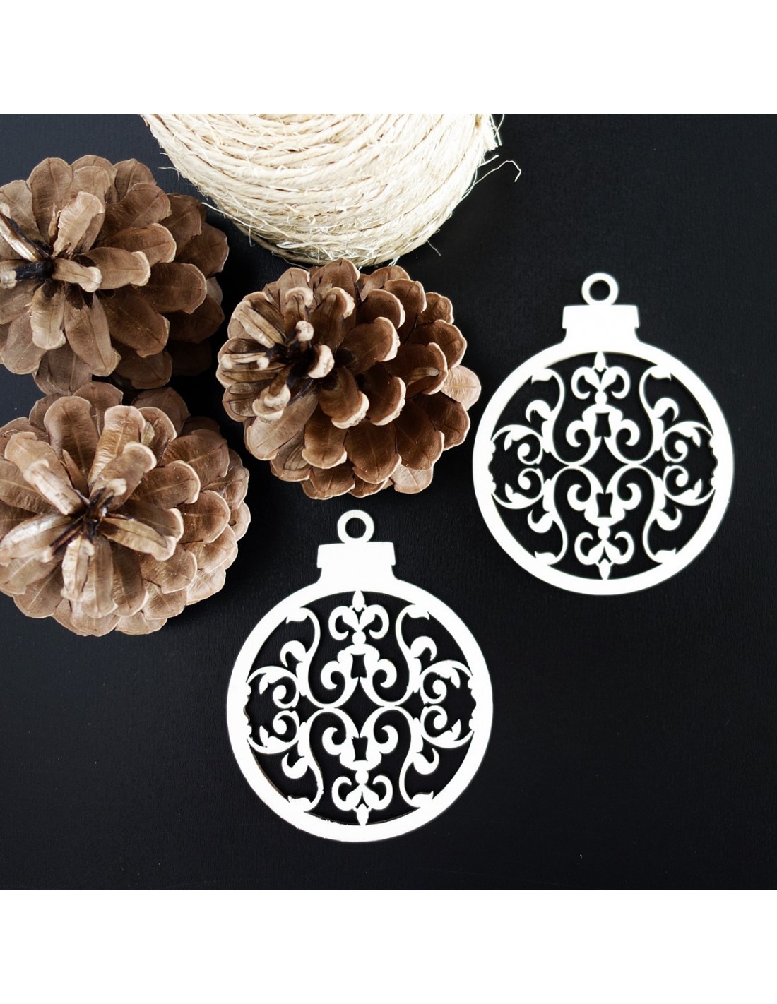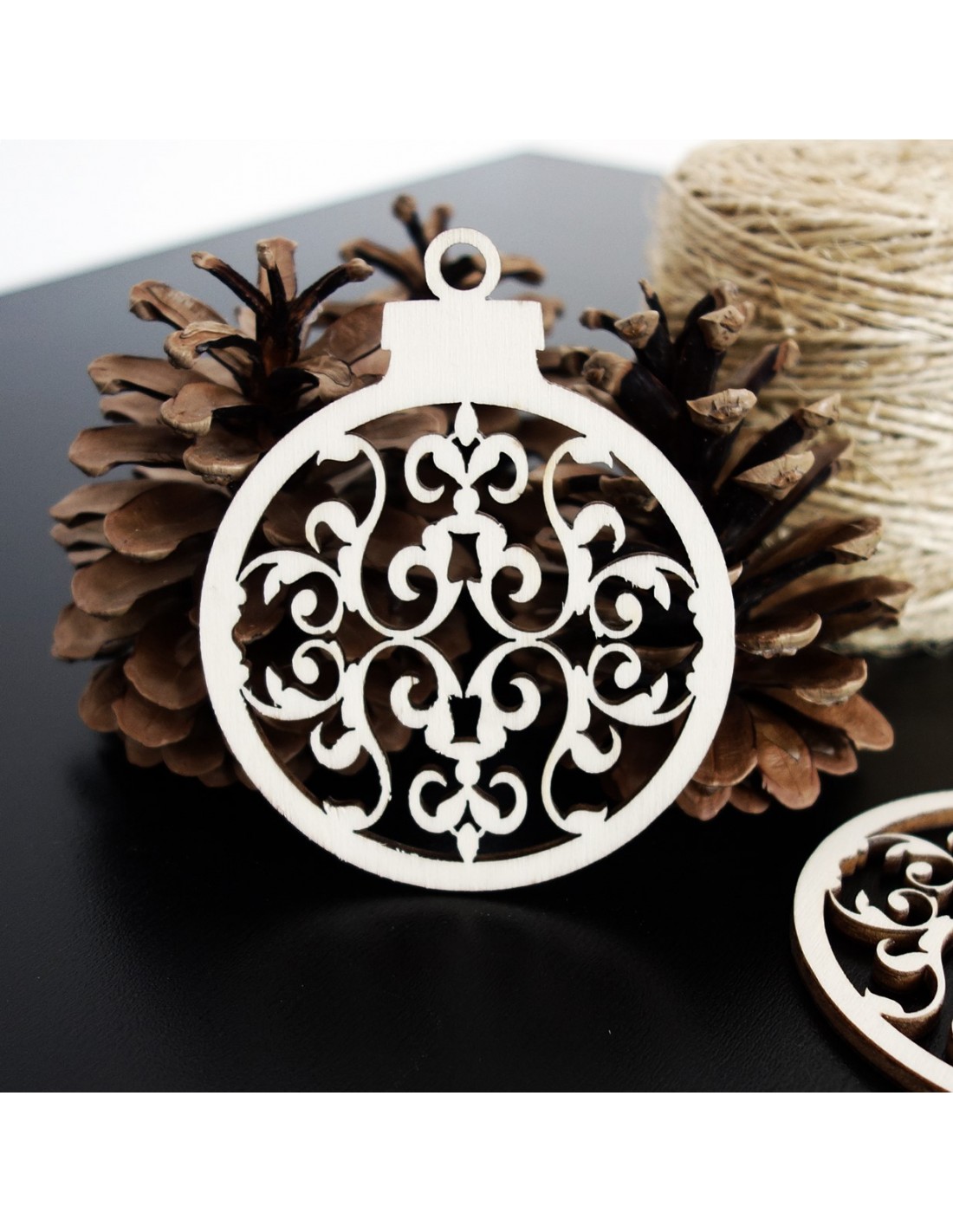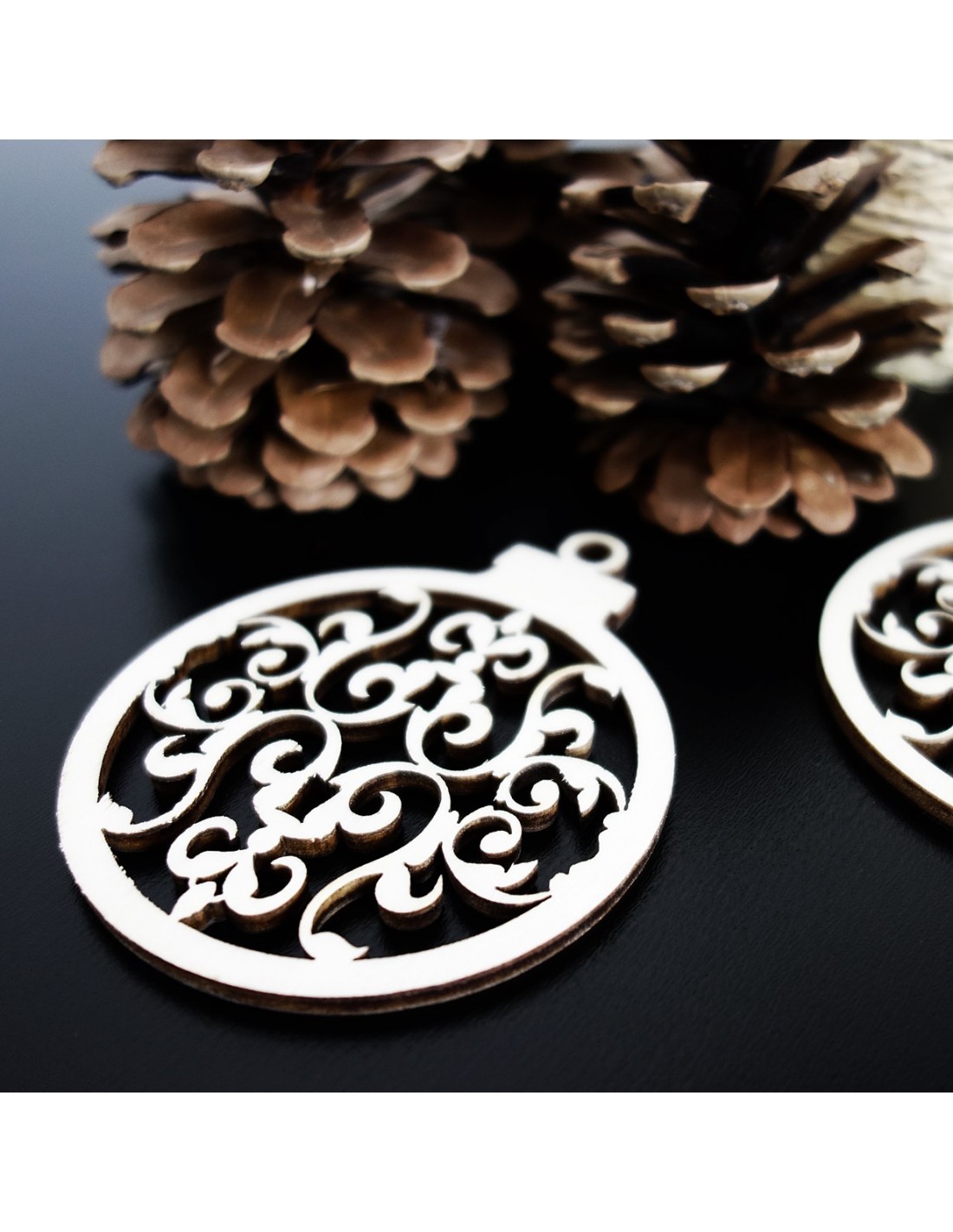 Drevená ozdoba-Vianočná guľa, rozmer: 79x90 mm