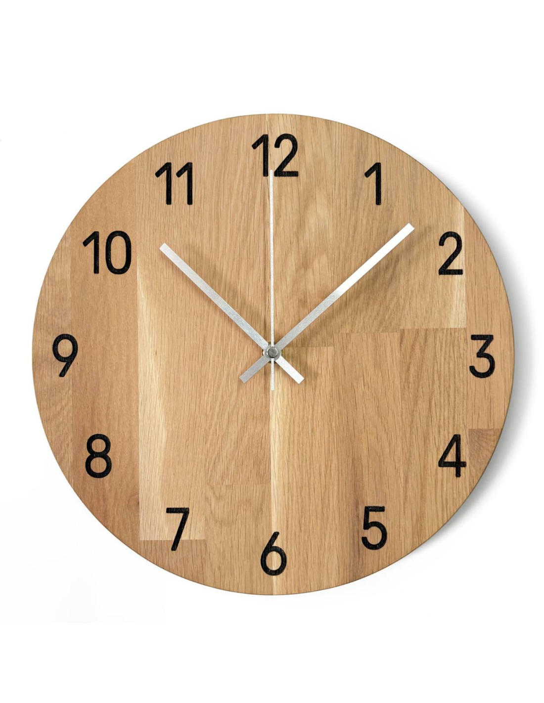 - Elegantný dizajn: Kombinácia dubového dreva a kovových ručičiek vytvára moderný, no zároveň nadčasový vzhľad.