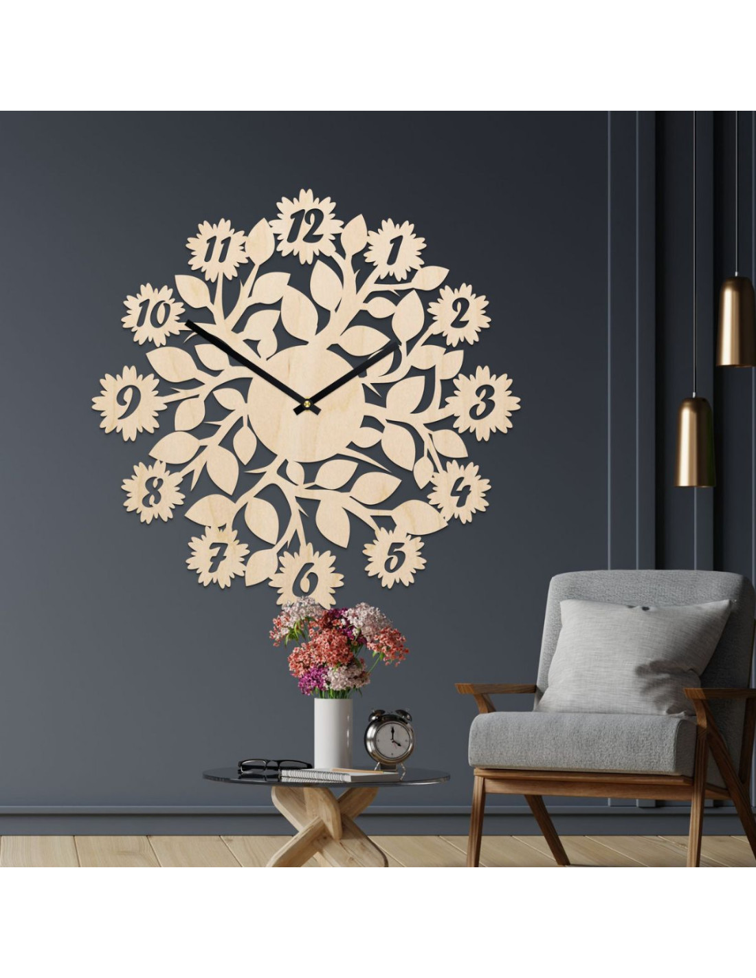 Originálne nástenné hodiny z dreva – prírodná elegancia s jemným kvetinovým dizajnom