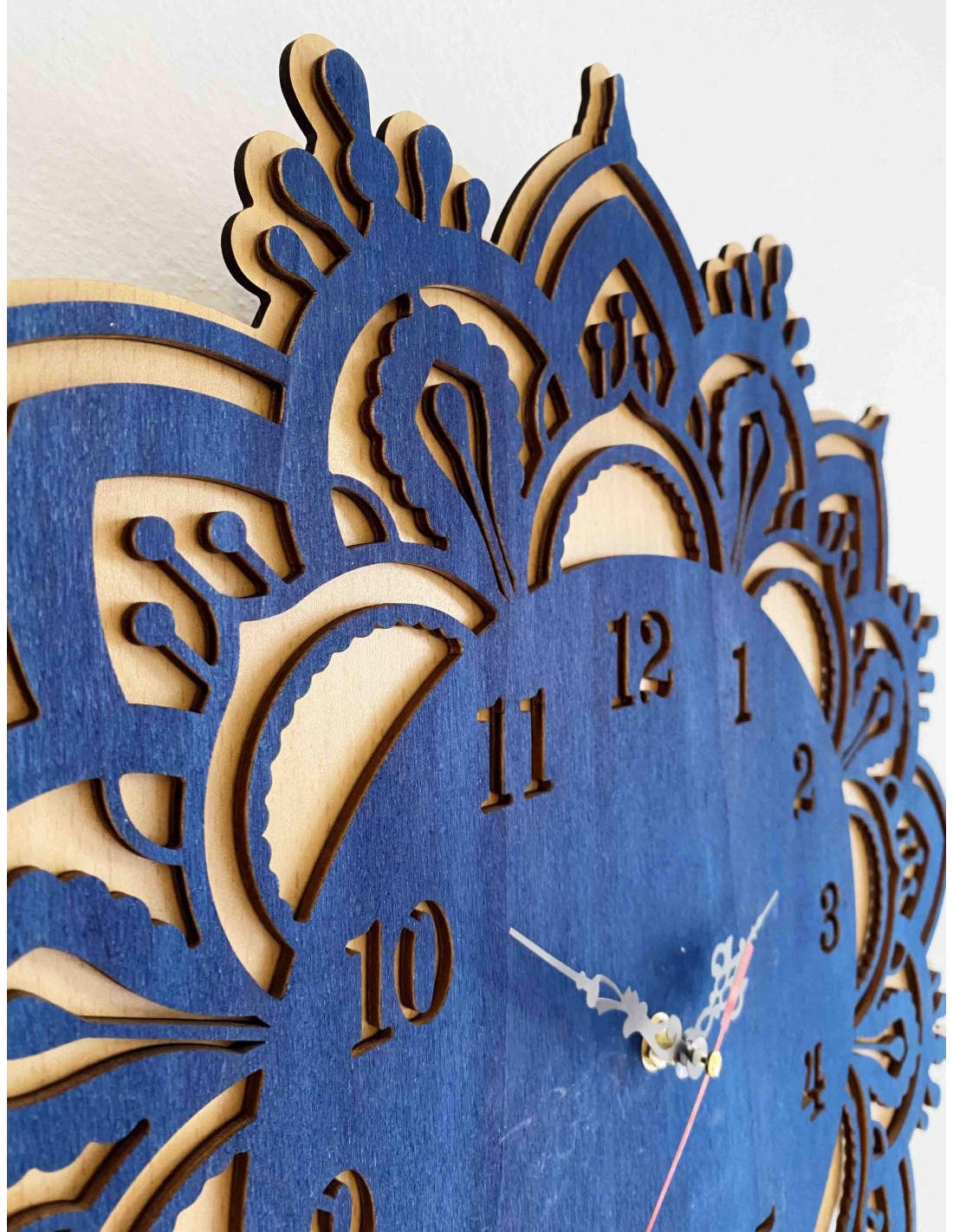 Drevené hodiny na stenu modré - dvojvrstvové