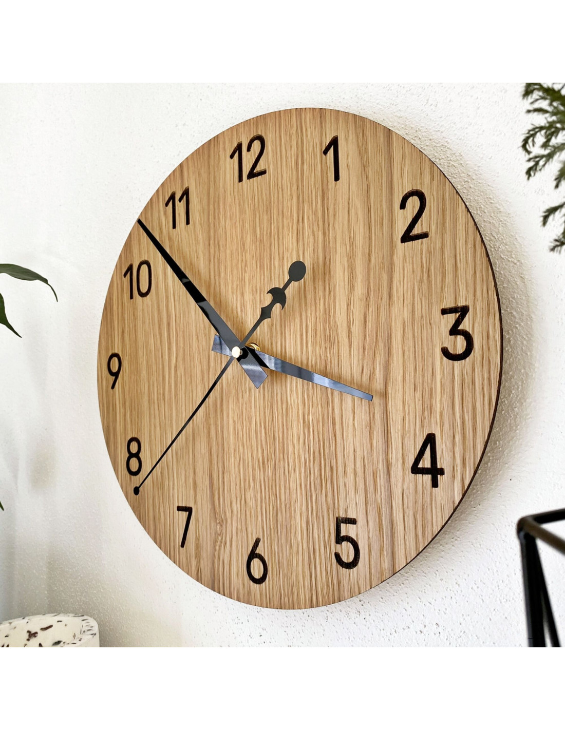 Tieto ručne vyrábané nástenné hodiny z dubovej preglejky sú jedinečným slovenským produktom, ktorého každá varianta je originál. Vďaka prírodnému dubovému drevu sa jemne líšia v štruktúre a odtieni, takže každé hodiny sú jedinečné. Výroba prebieha ručne na Slovensku (EU), pričom konečná farba dreva môže jemne variovať podľa jeho prirodzenej kresby.