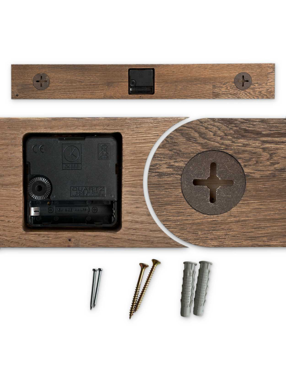 - Prírodný a elegantný dizajn - Kombinácia dubového dreva a kovových ručičiek vytvára moderný, no zároveň nadčasový vzhľad.