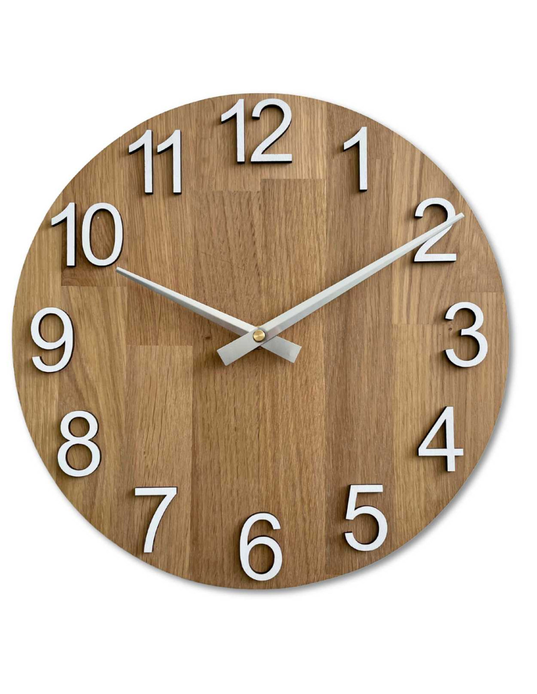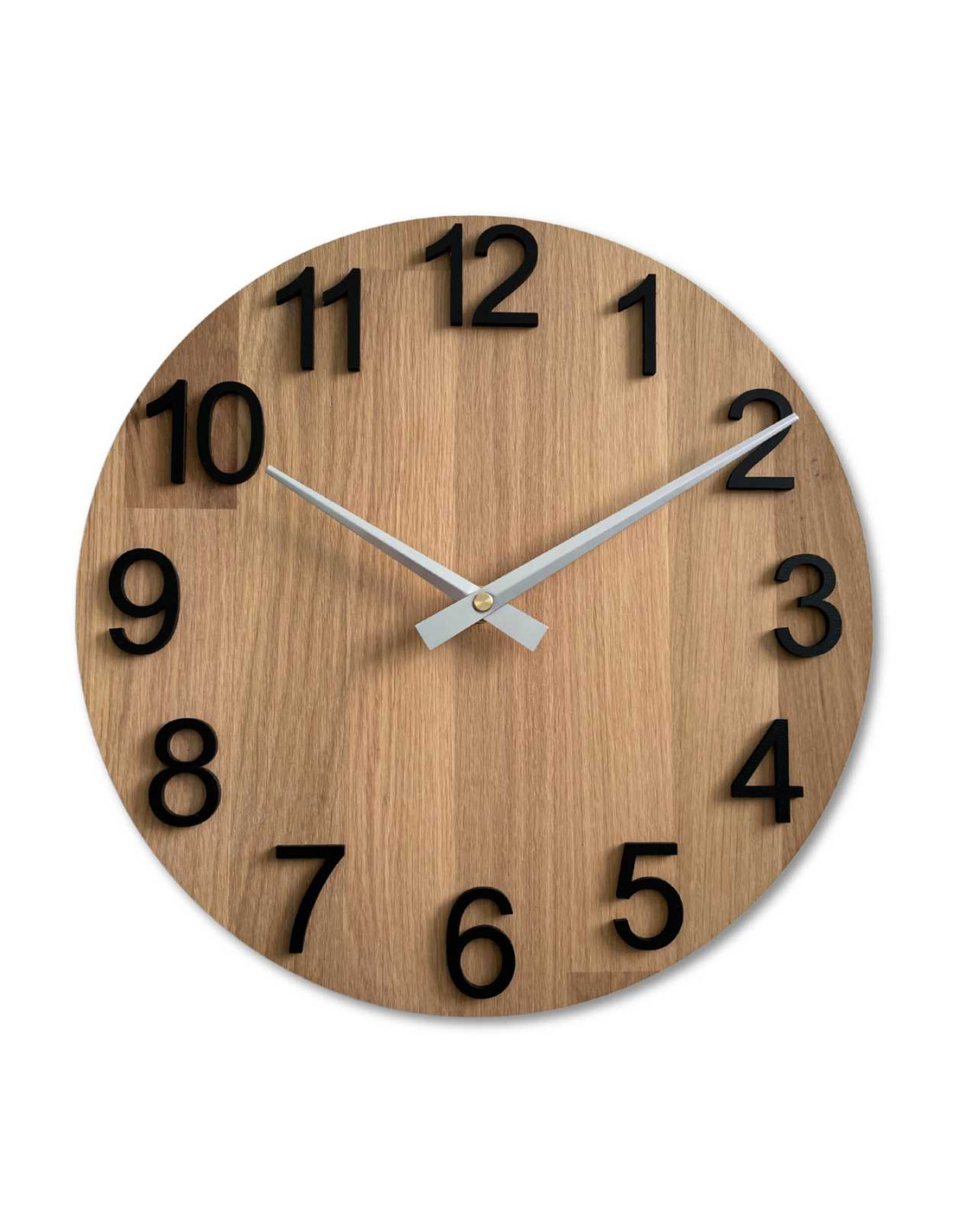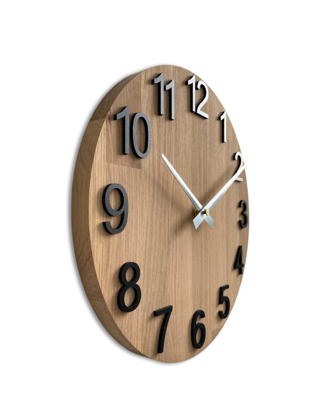 - Elegantný dizajn: Kombinácia dubového dreva a kovových ručičiek vytvára moderný, no zároveň nadčasový vzhľad.