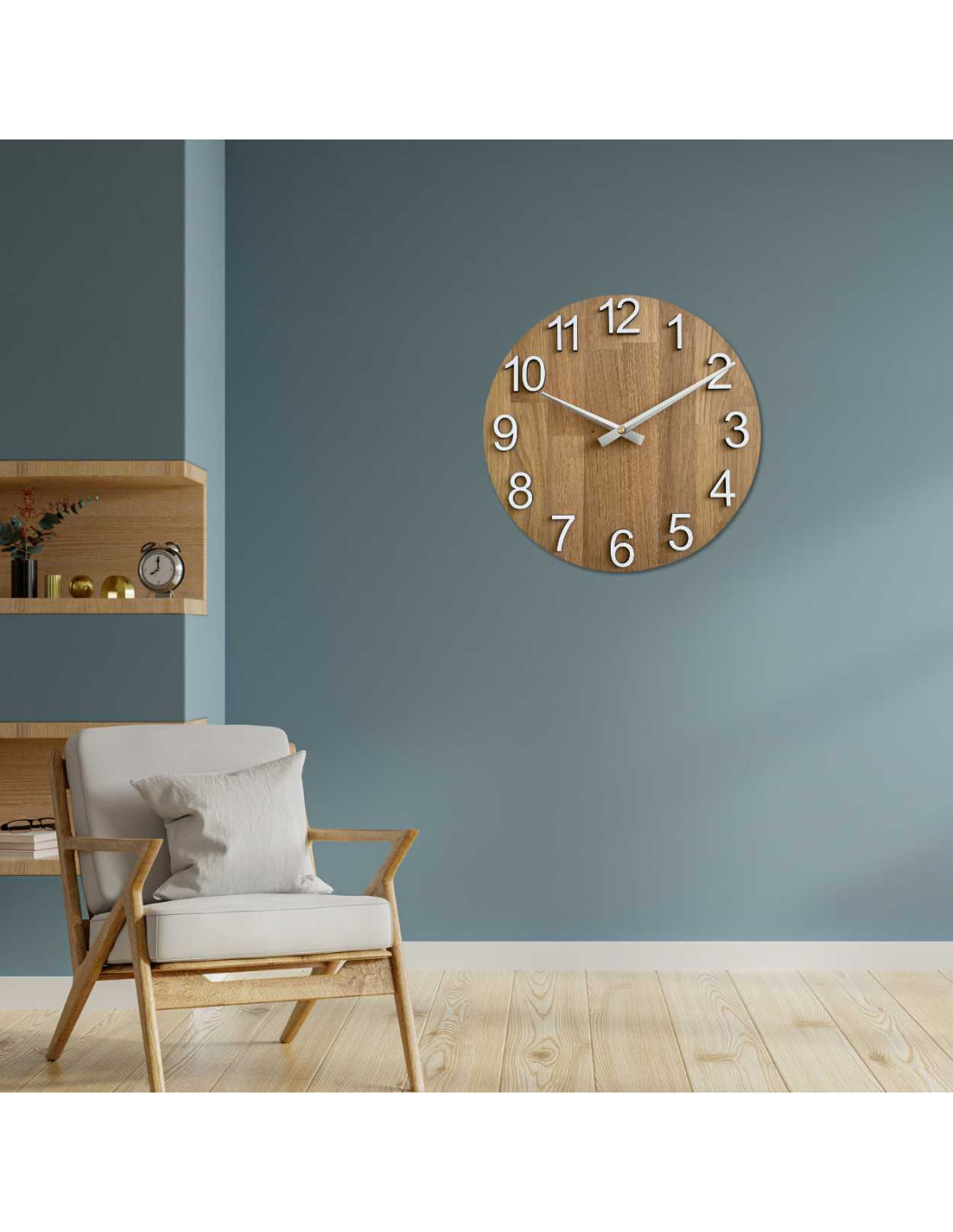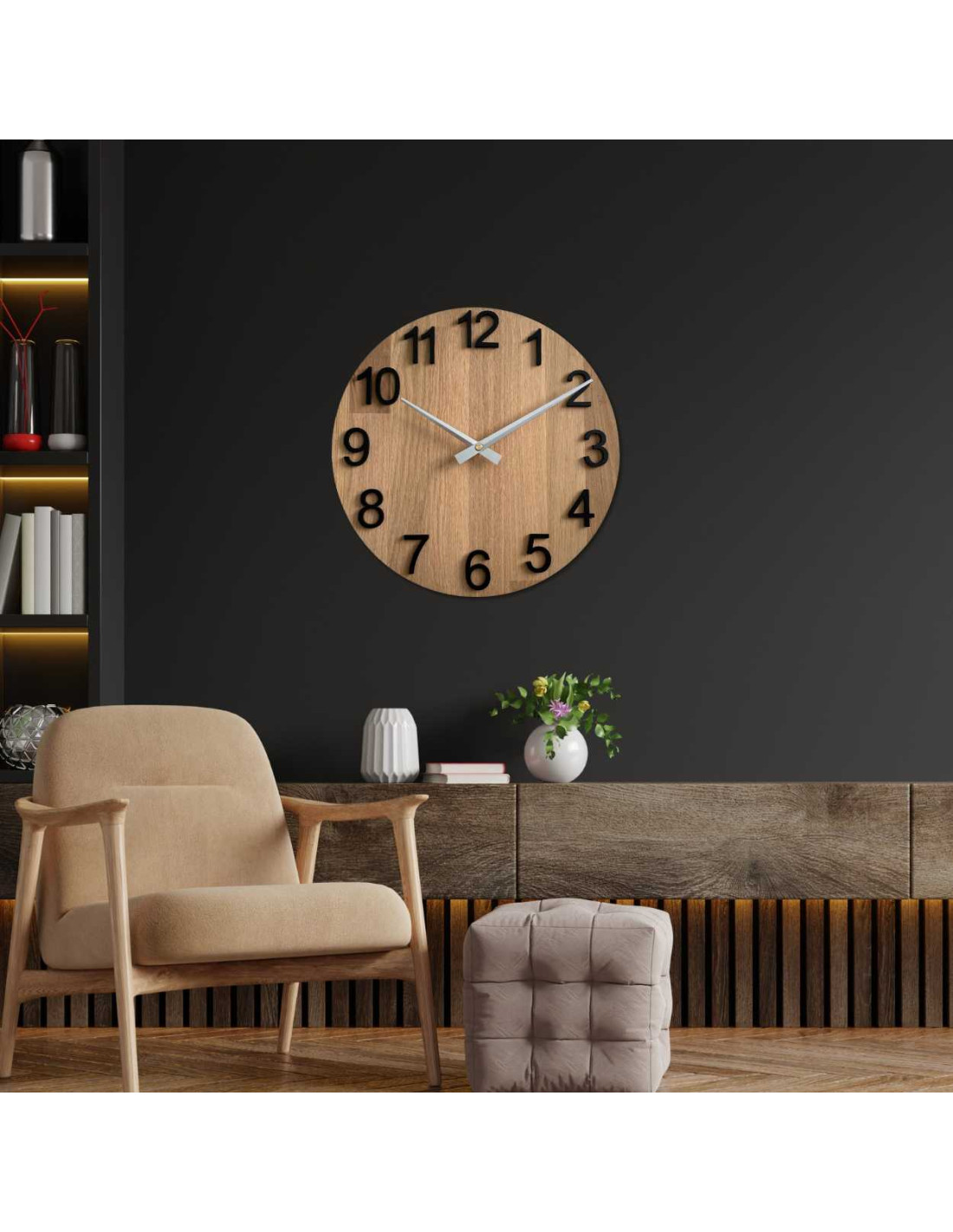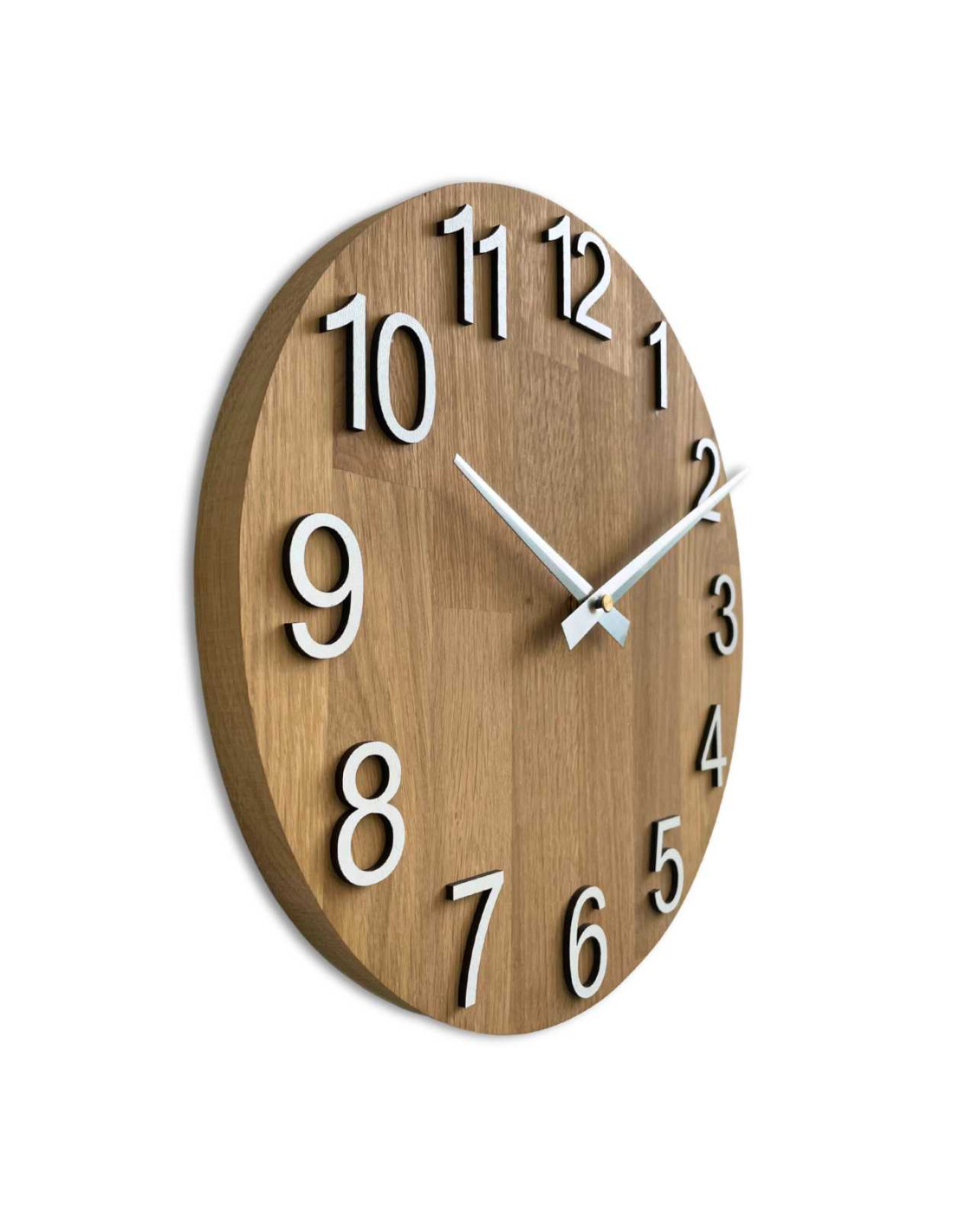 - Elegantný dizajn: Kombinácia dubového dreva a kovových ručičiek vytvára moderný, no zároveň nadčasový vzhľad.