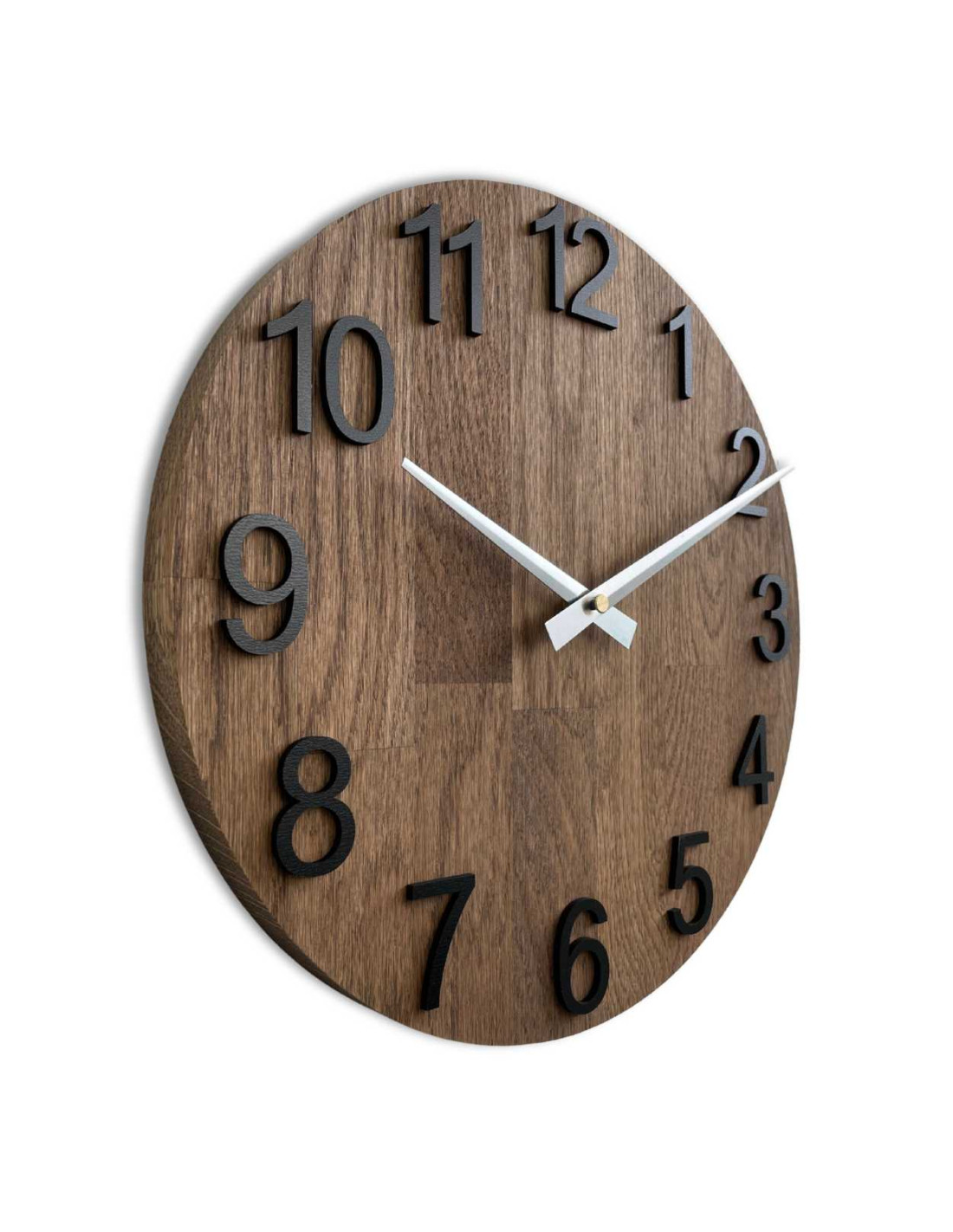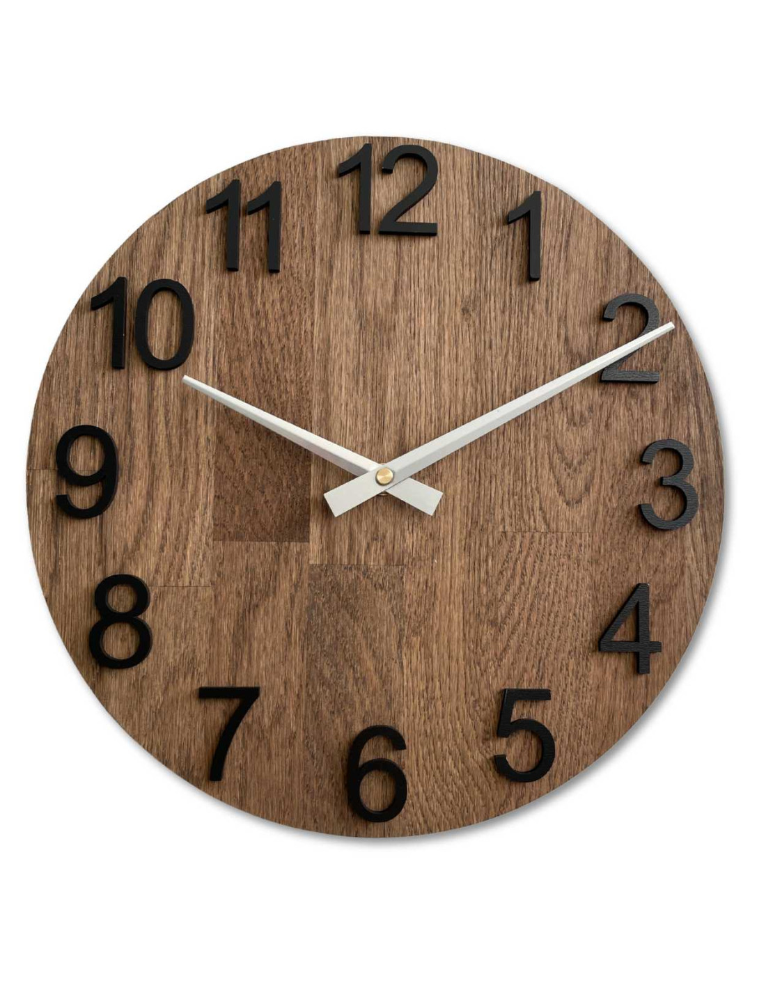 - Elegantný dizajn: Kombinácia dubového dreva a kovových ručičiek vytvára moderný, no zároveň nadčasový vzhľad.