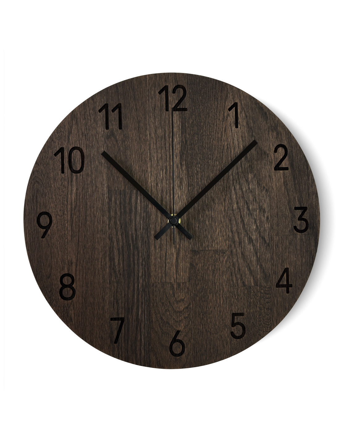 Každé hodiny vznikajú z masívnych dubových panelov, ktoré najprv presne vyrežeme do požadovaného tvaru a veľkosti pomocou CNC technológie.