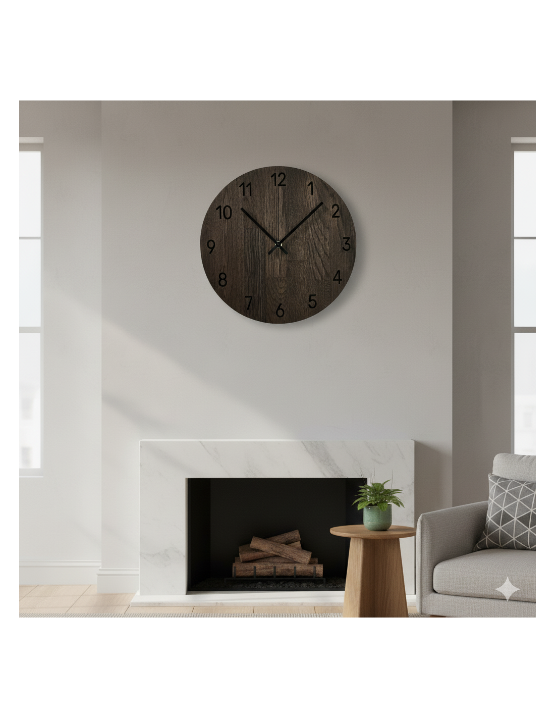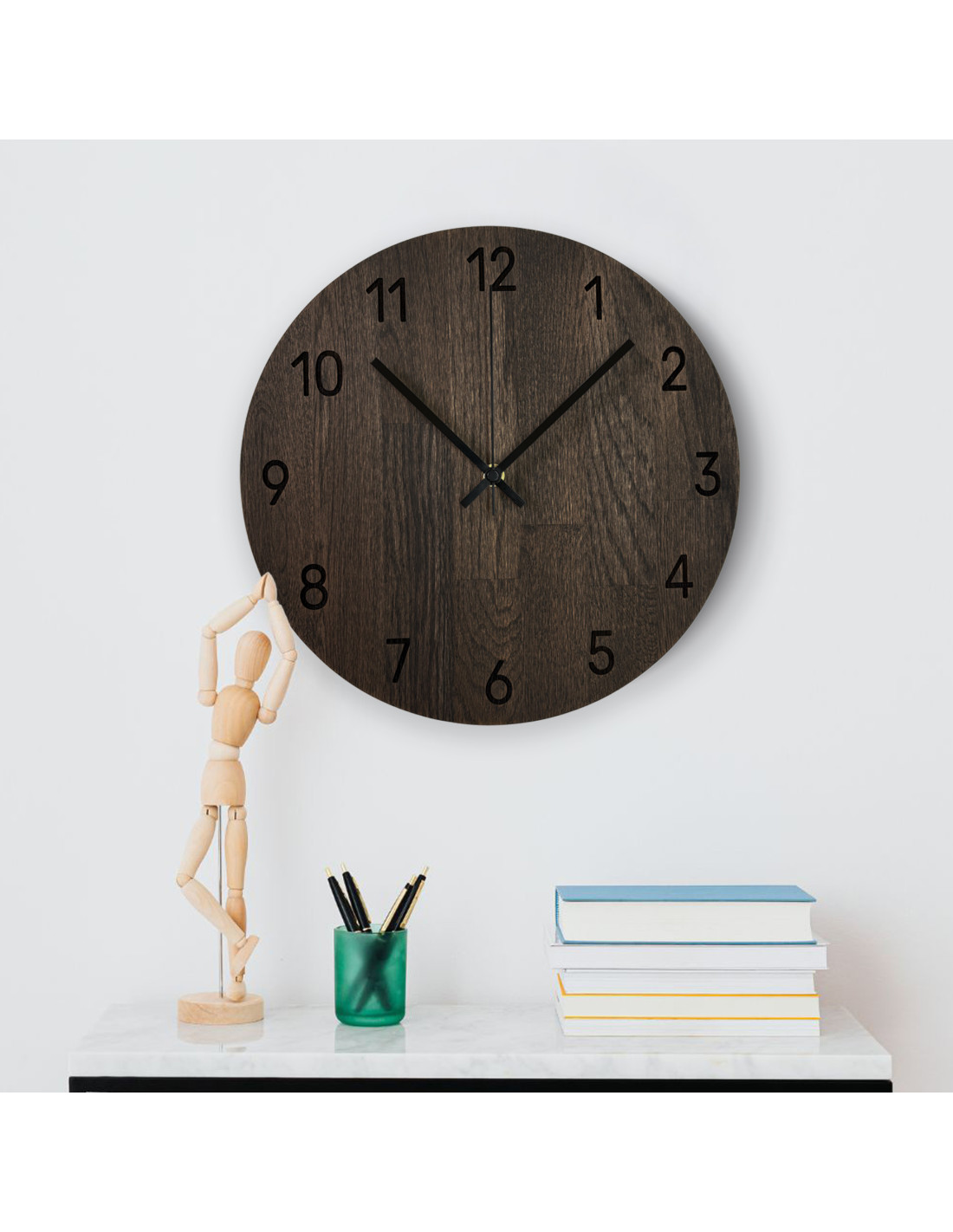 - Elegantný dizajn: Kombinácia dubového dreva a kovových ručičiek vytvára moderný, no zároveň nadčasový vzhľad.