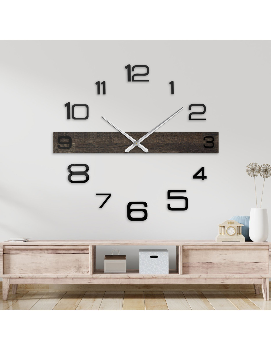• Ručičky hodín: kovové strieborné/čierne – minútová ručička 31 cm (12,2 palca), hodinová ručička 39 cm (15,4 palca)