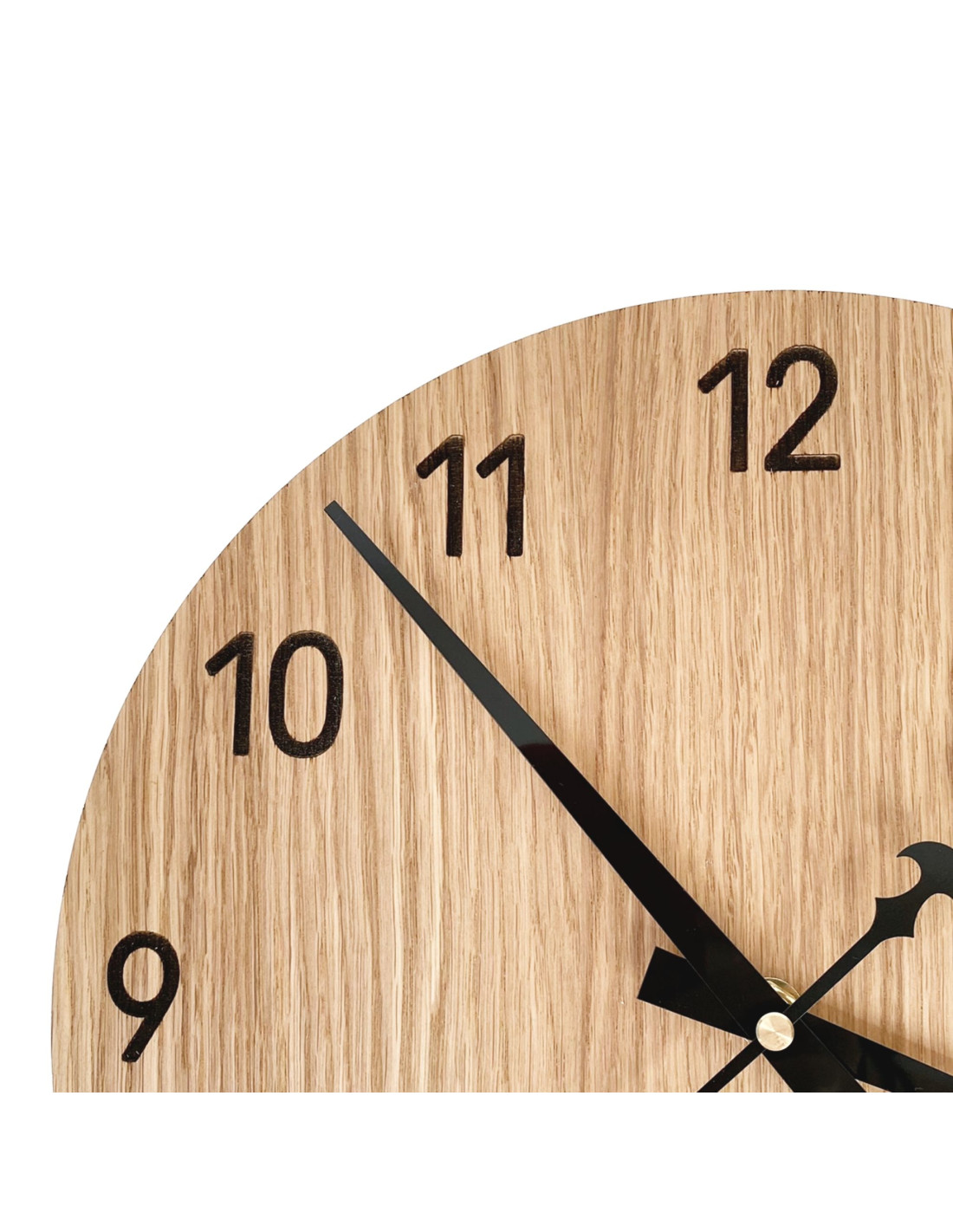 Prírodná krása dubového dreva v spojení s elegantnými čiernymi ručičkami vytvára decentný a moderný vzhľad. Hodiny dokonale ladia s rustikálnymi aj minimalistickými interiérmi a prinášajú do priestoru harmonický vizuálny prvok.