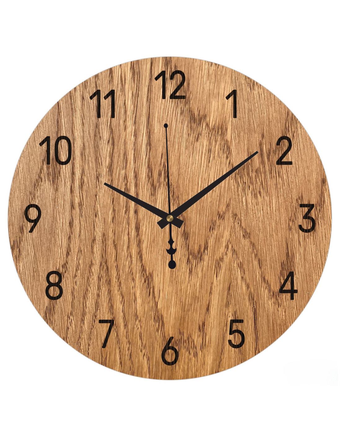 Moderné nástenné hodiny z pravého dubového dreva prinášajú spojenie remeselnej kvality, ticha a nadčasovej estetiky.