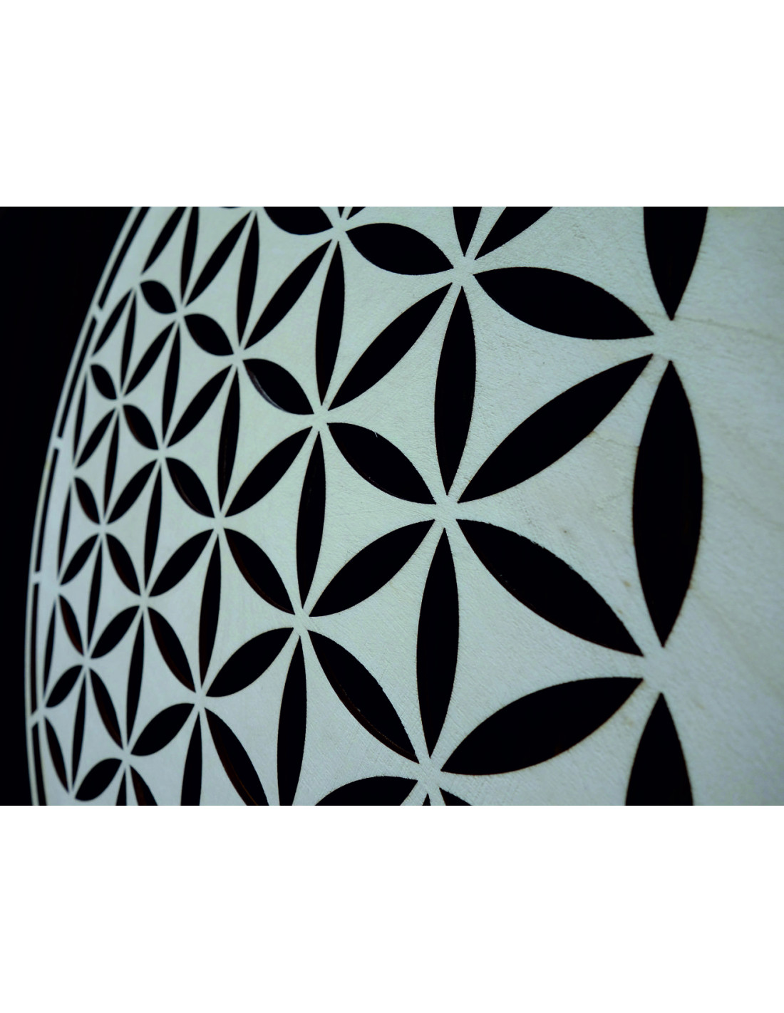 Tento krásny drevený dekor so vzorom Kvetu života spája nadčasový dizajn s hlbokou symbolikou.