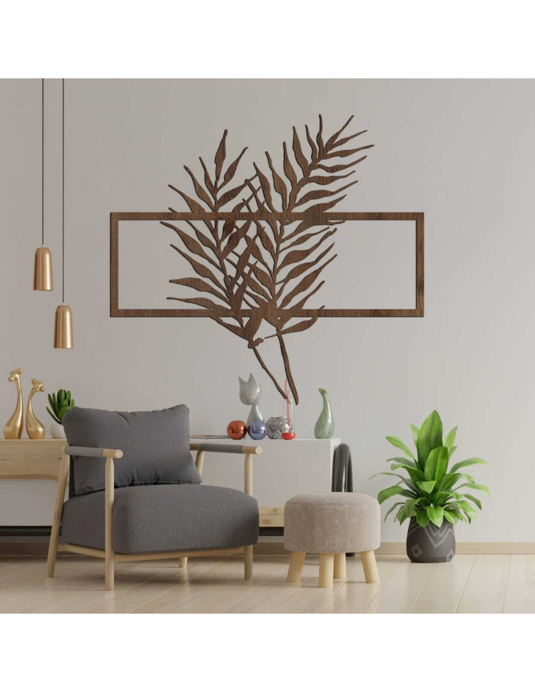 Drevený obraz s minimalistickými listami v ráme - PAPRADE