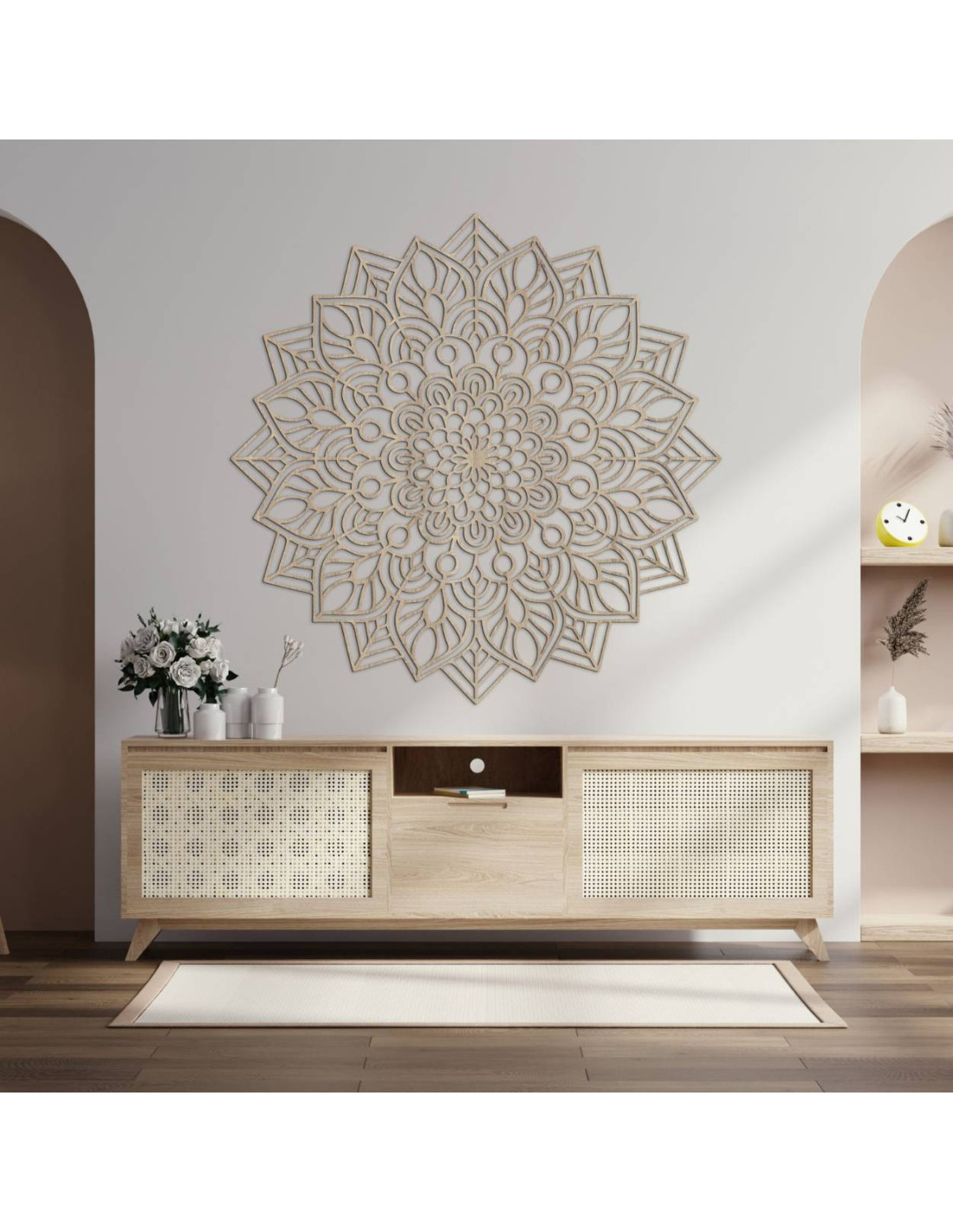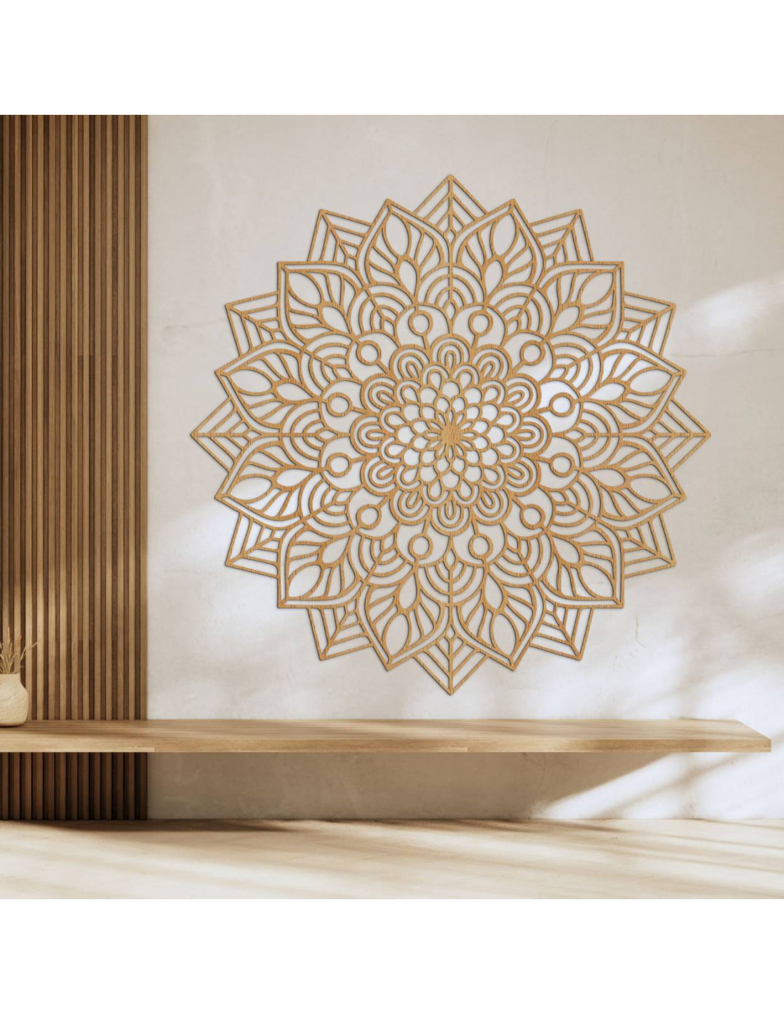 Táto elegantná drevená mandala na stenu je dokonalým spojením precízneho remesla a harmonického dizajnu. Jej jemne prepracovaná geometrická štruktúra pôsobí ako vizuálna poézia – vrstvy tvarov, ktoré sa prelínajú do jedného vyváženého celku.