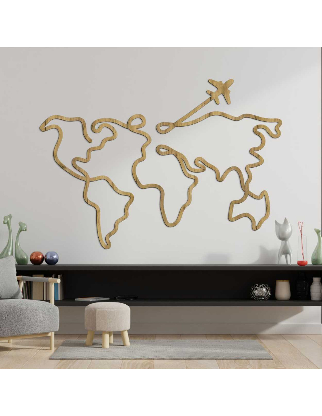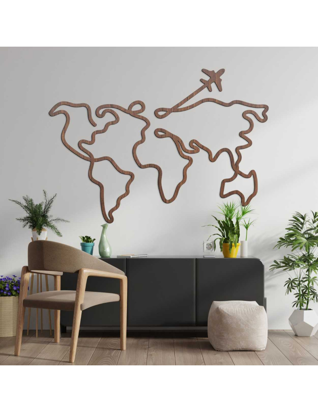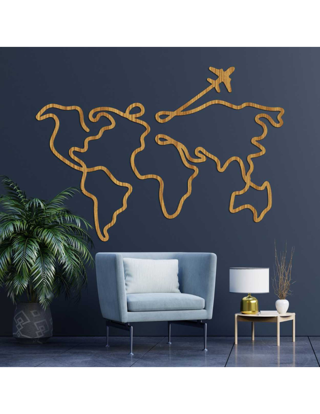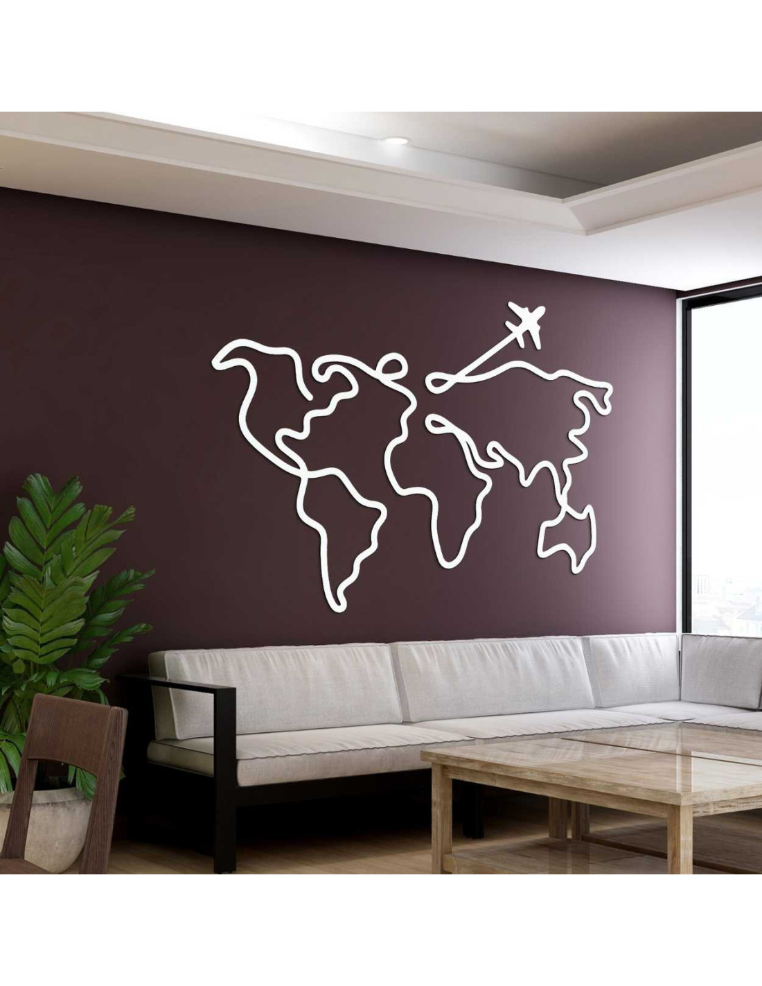 Tvar mapy sveta spojený jedným elegantným ťahom vytvára dojem nepretržitej cesty.