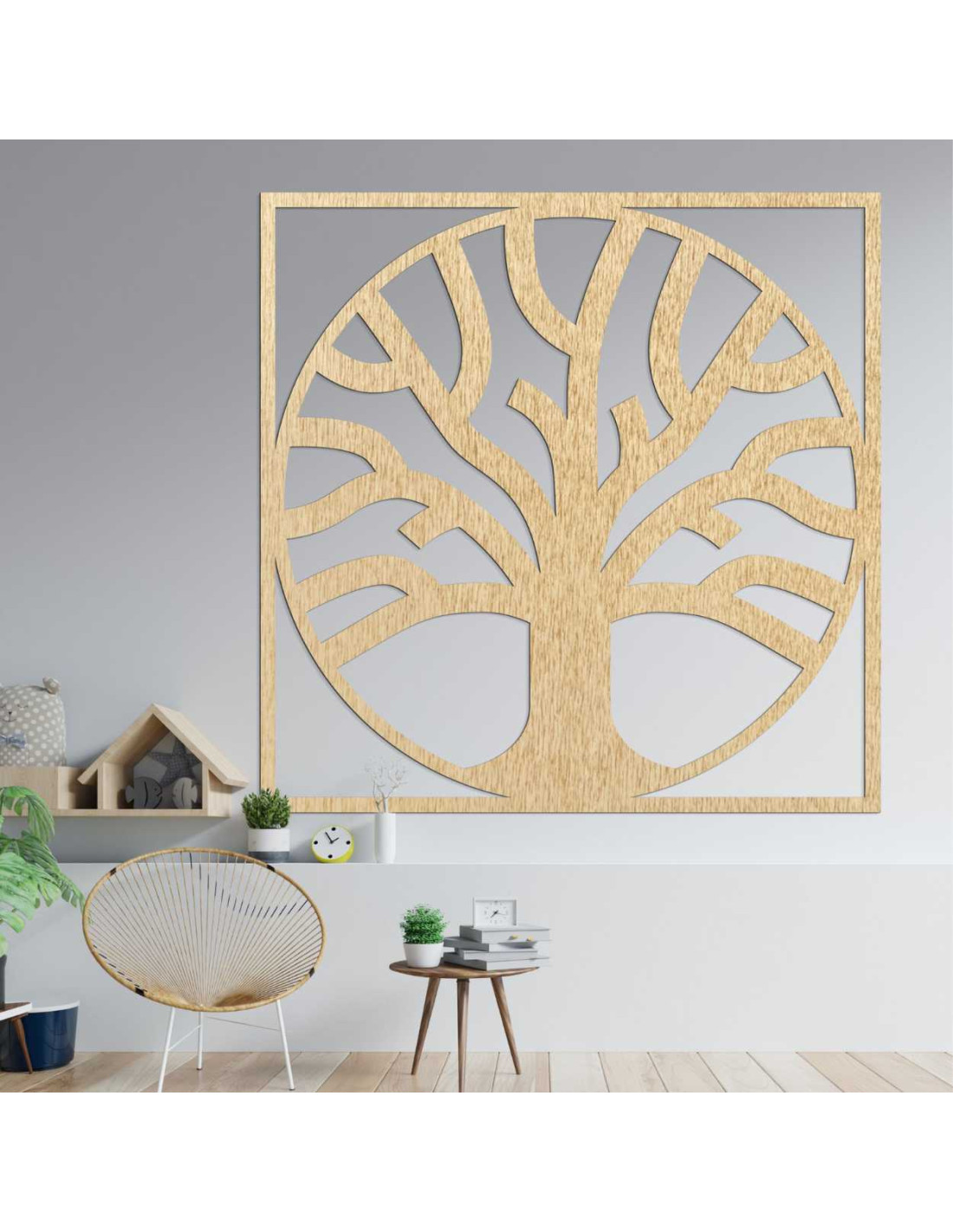 Nástenná drevená dekorácia Strom života a jemnosti štvorec - BALERIAN