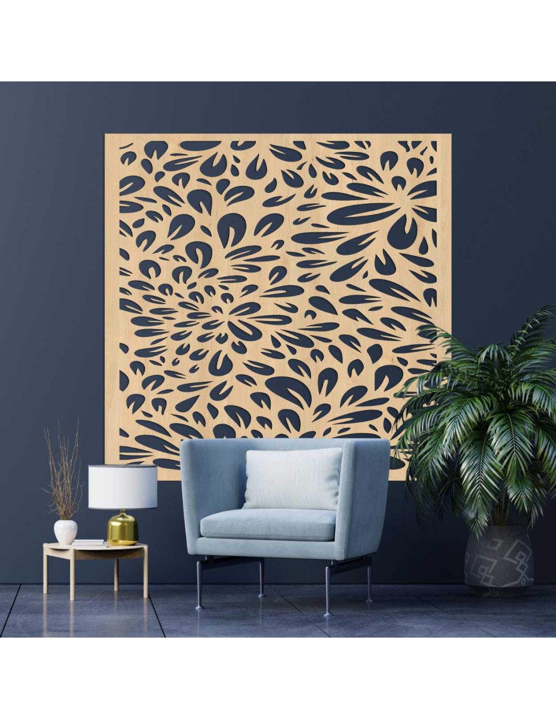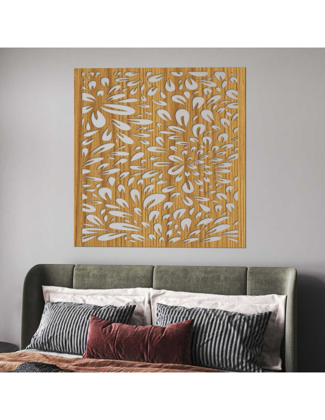 Organický motív pripomína rozkvitajúcu záhradu, kde každý lístok symbolizuje pohyb a rast.