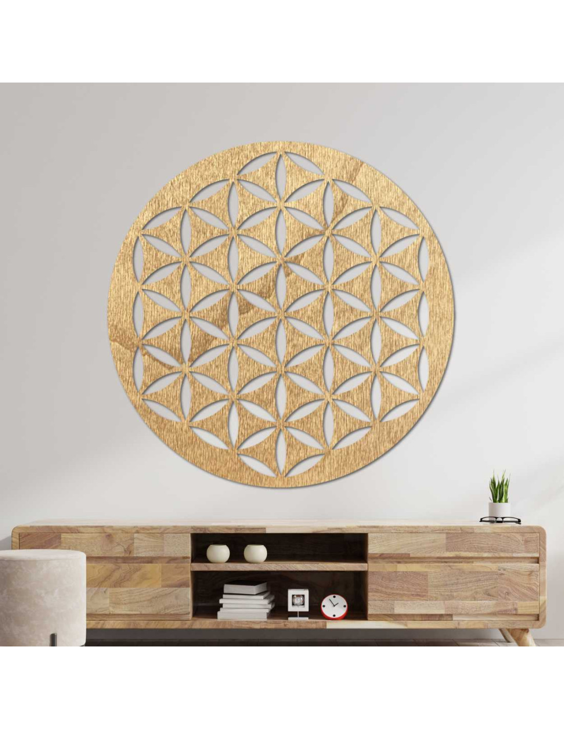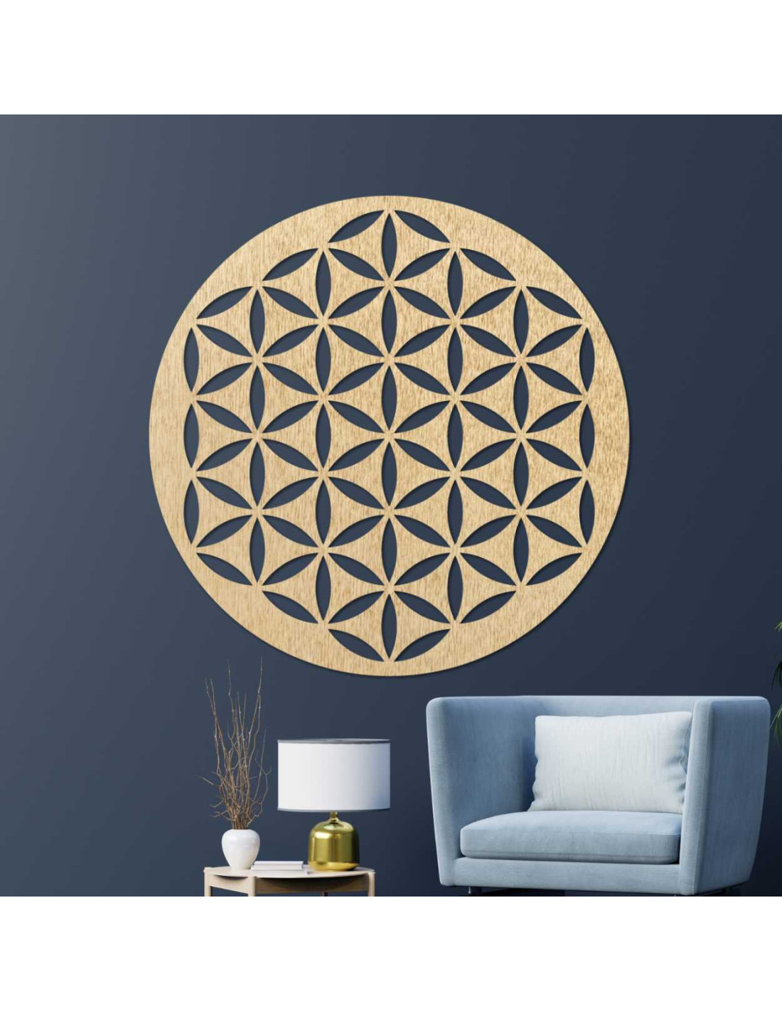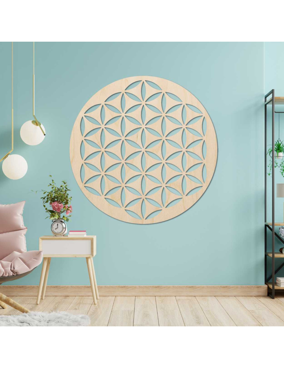 Elegantná nástenná dekorácia s geometrickým motívom "Kvet života" prináša harmóniu, rovnováhu a duchovný význam do každého priestoru.