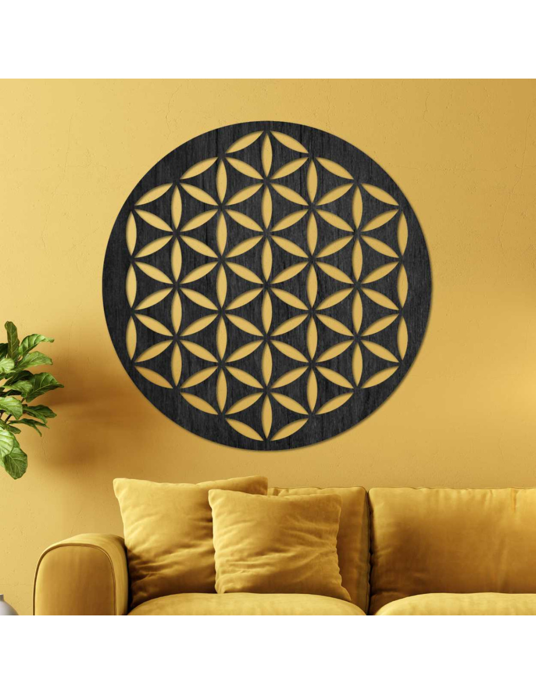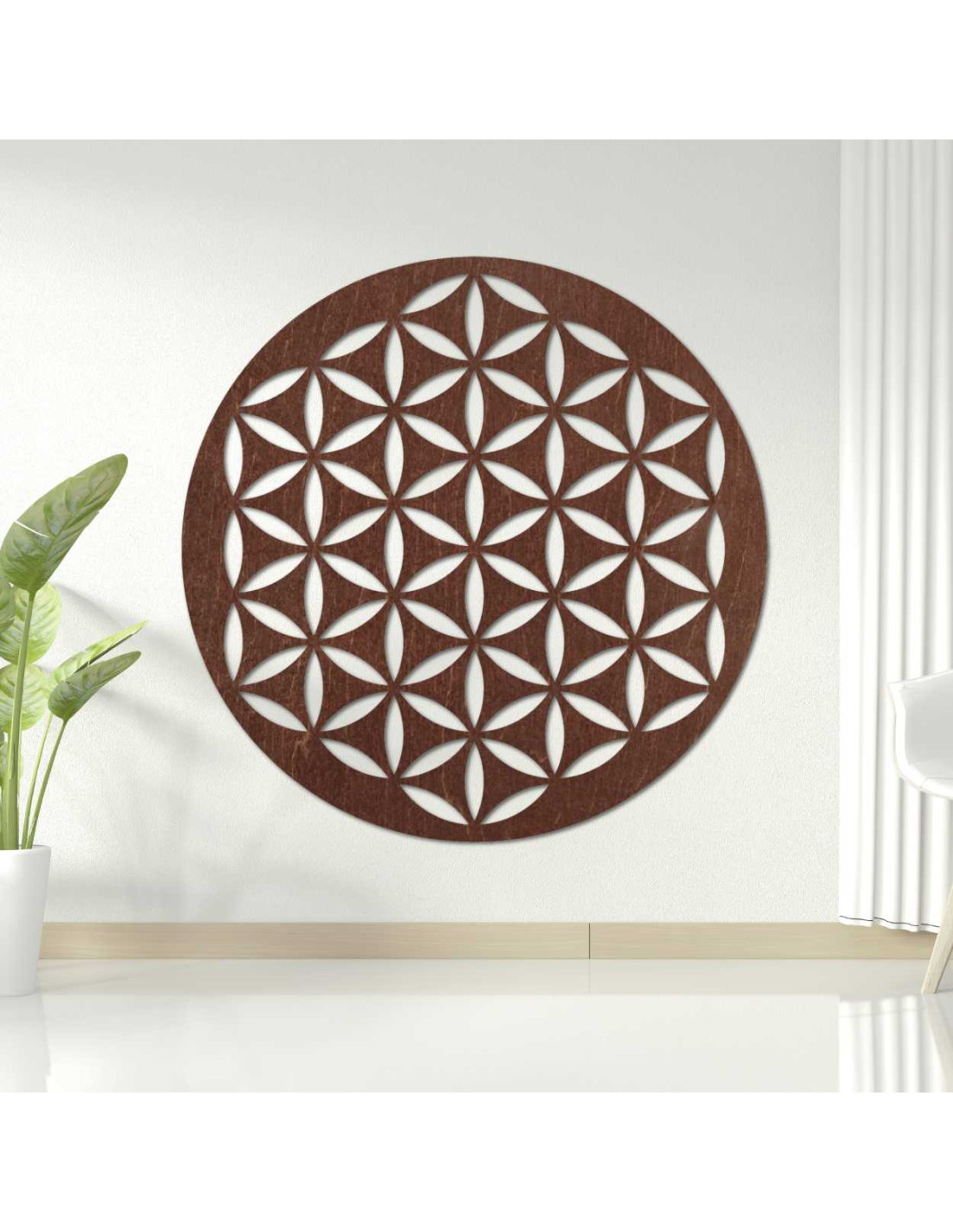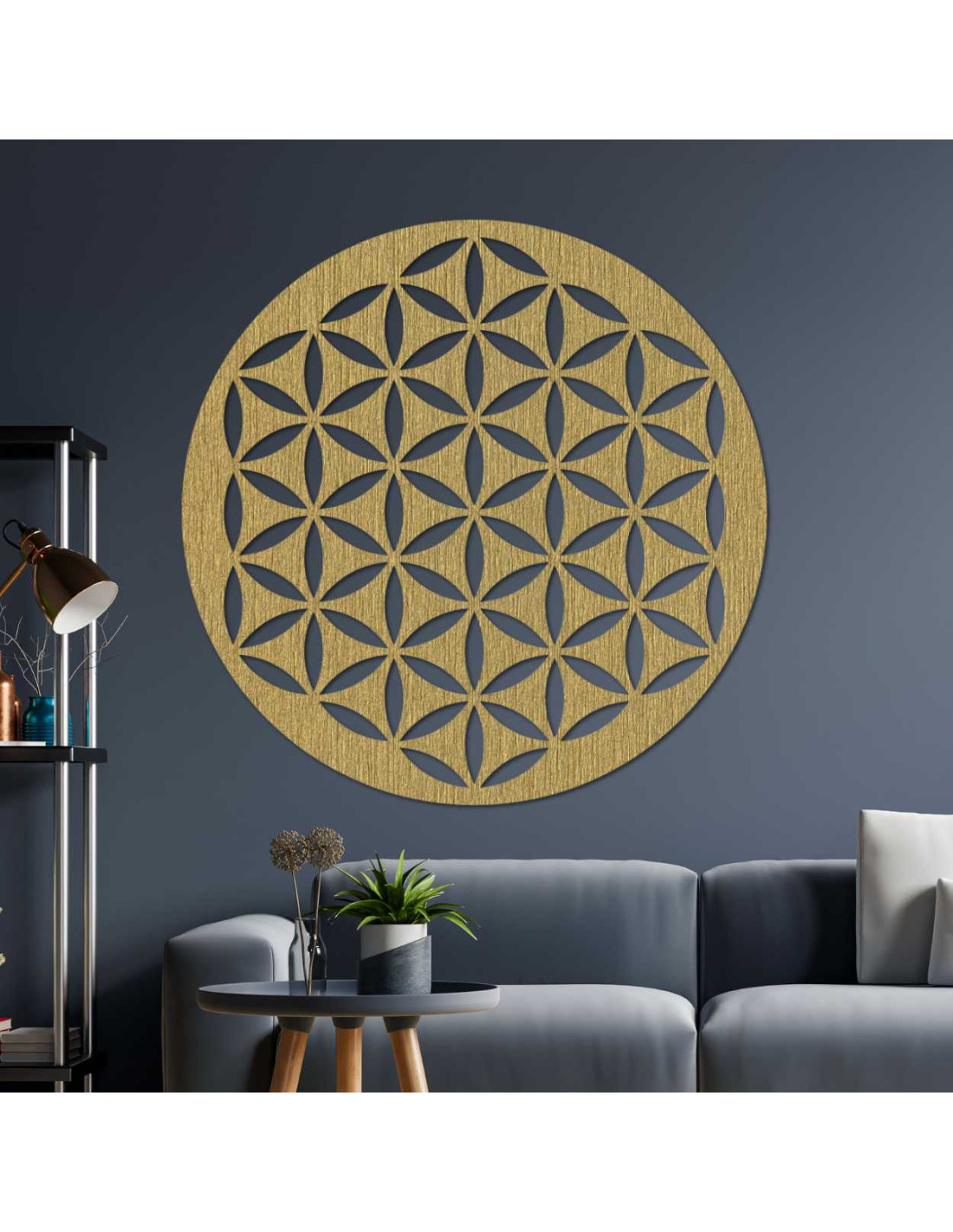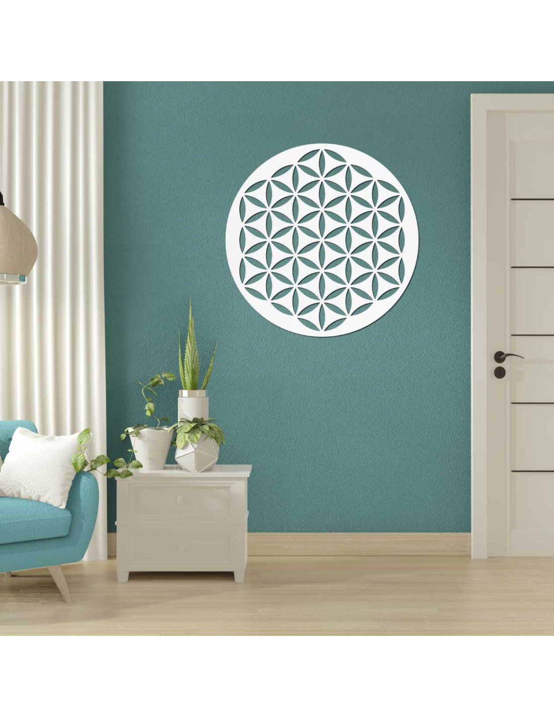 Elegantná nástenná dekorácia s geometrickým motívom "Kvet života" prináša harmóniu, rovnováhu a duchovný význam do každého priestoru.