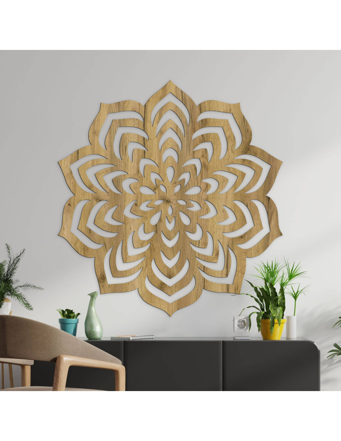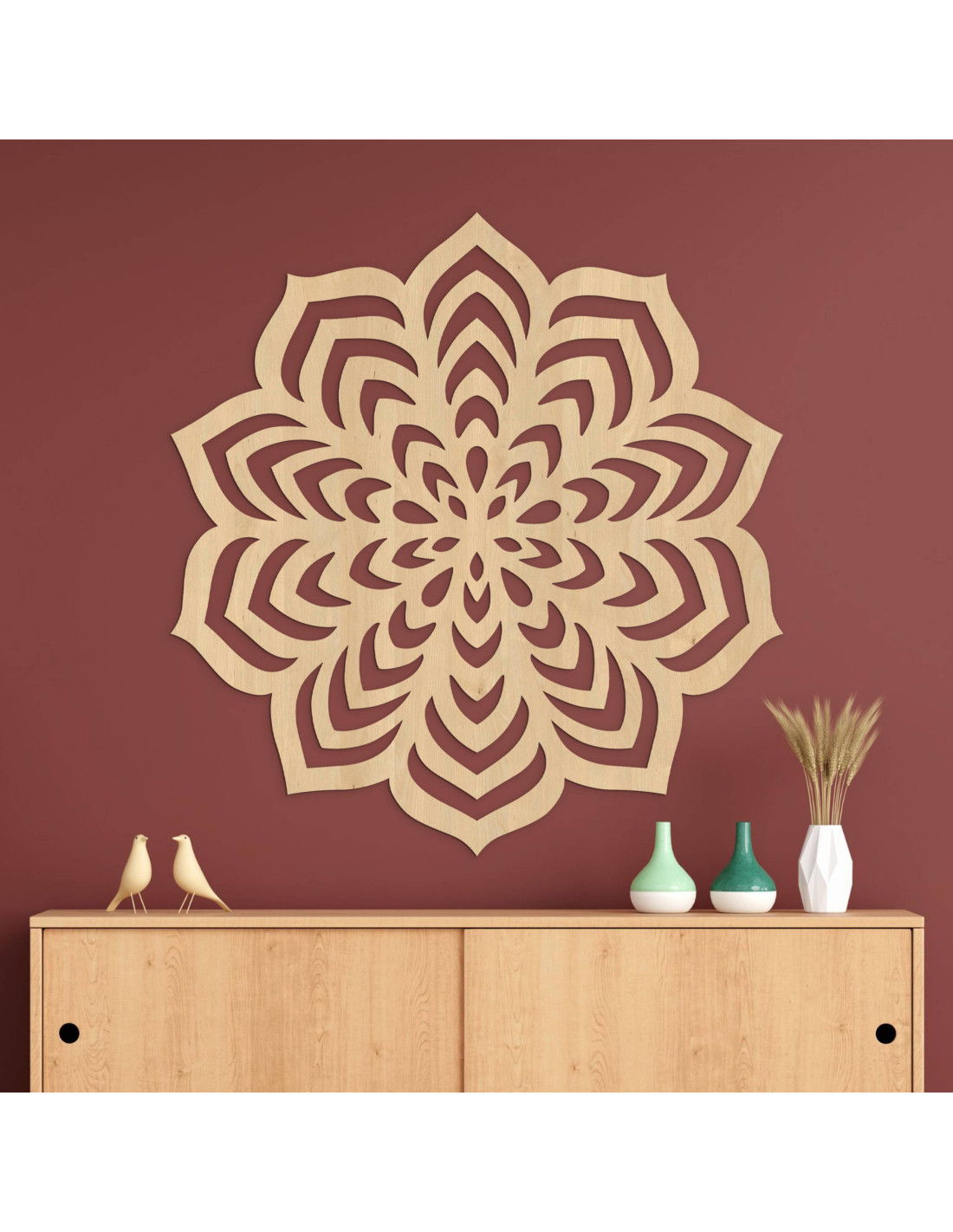 Drevená mandala zachytáva pohyb v pokoji a jednoduchosť v zložitosti.