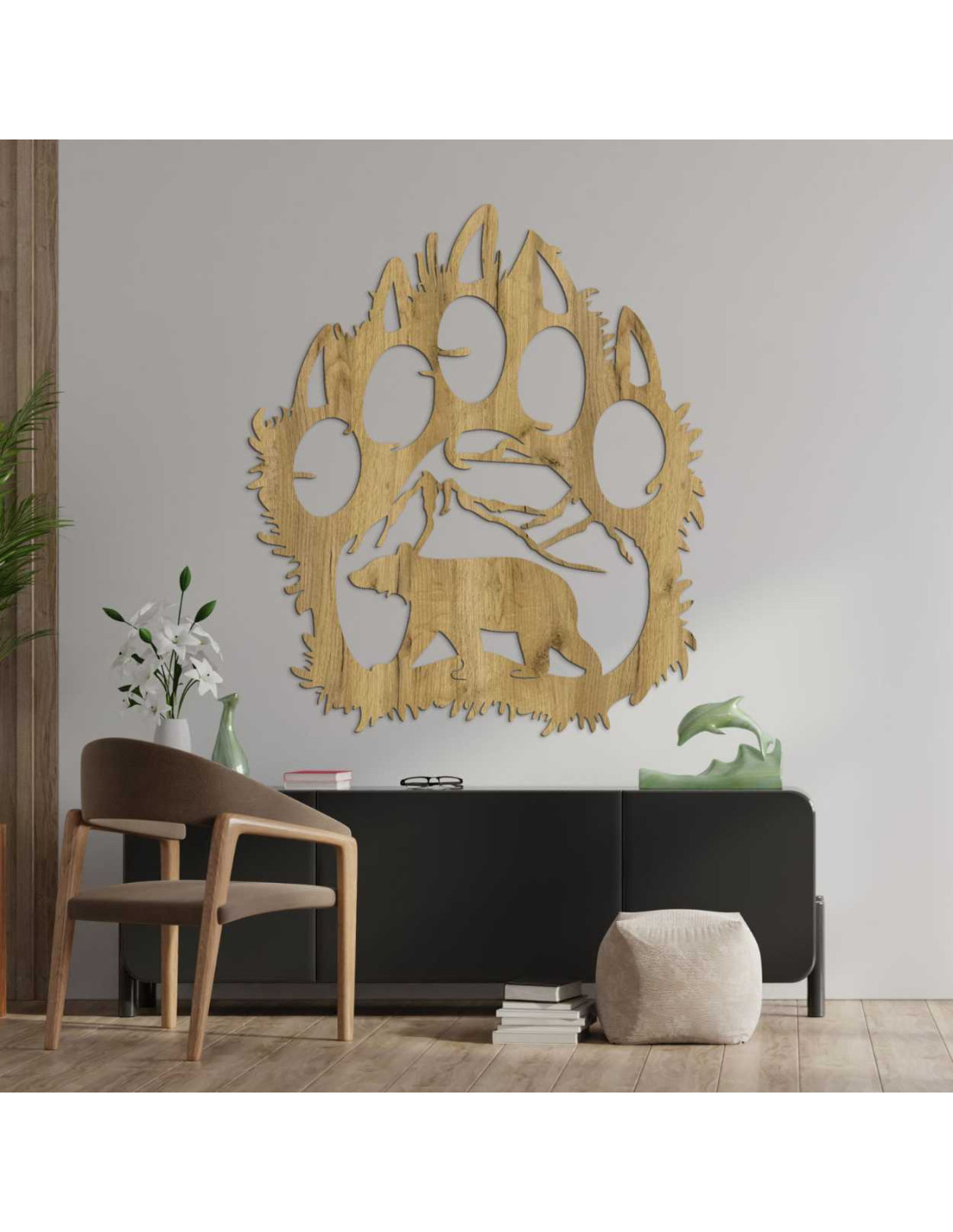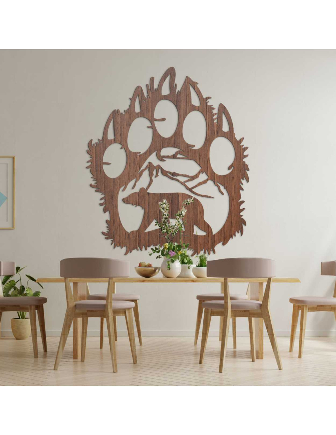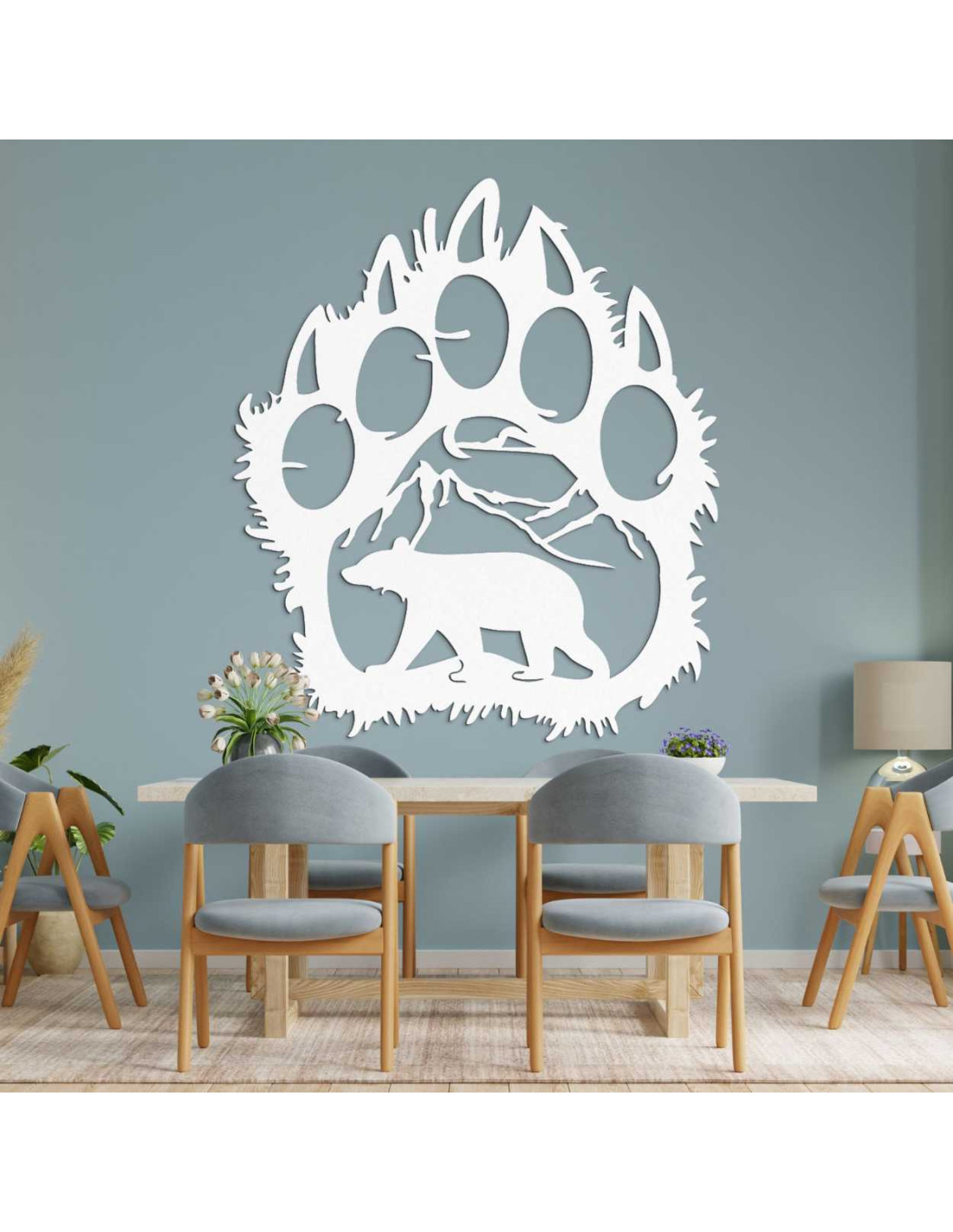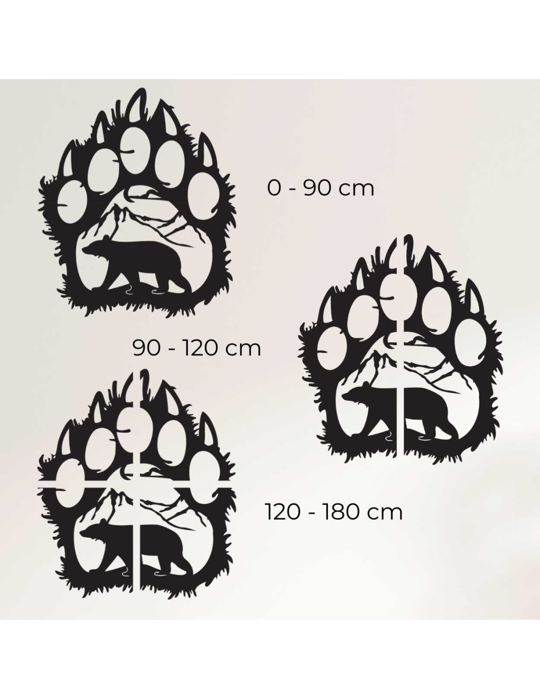 Dynamická silueta medvedej stopy doplnená o prírodné scény prináša do priestoru charakter a hĺbku.