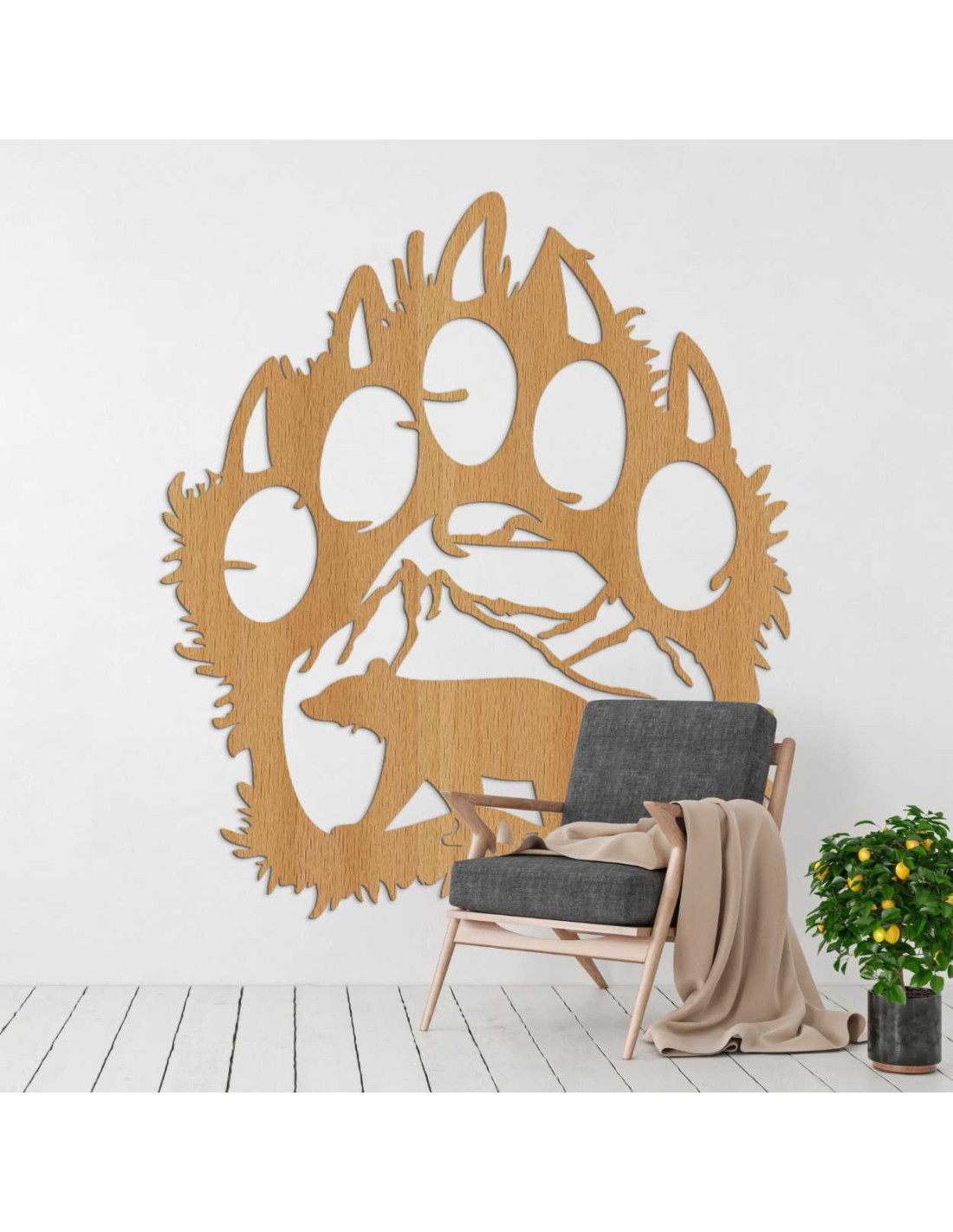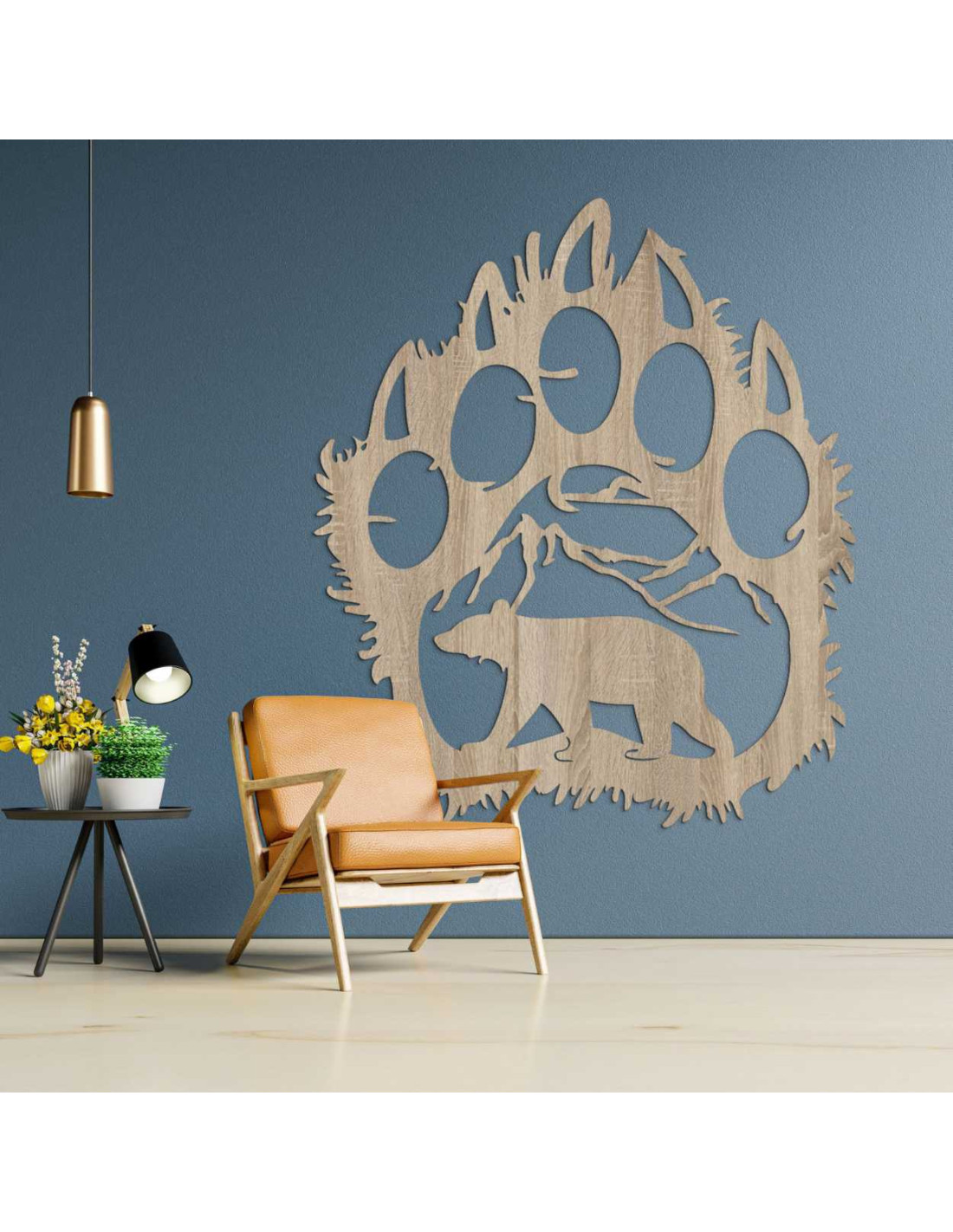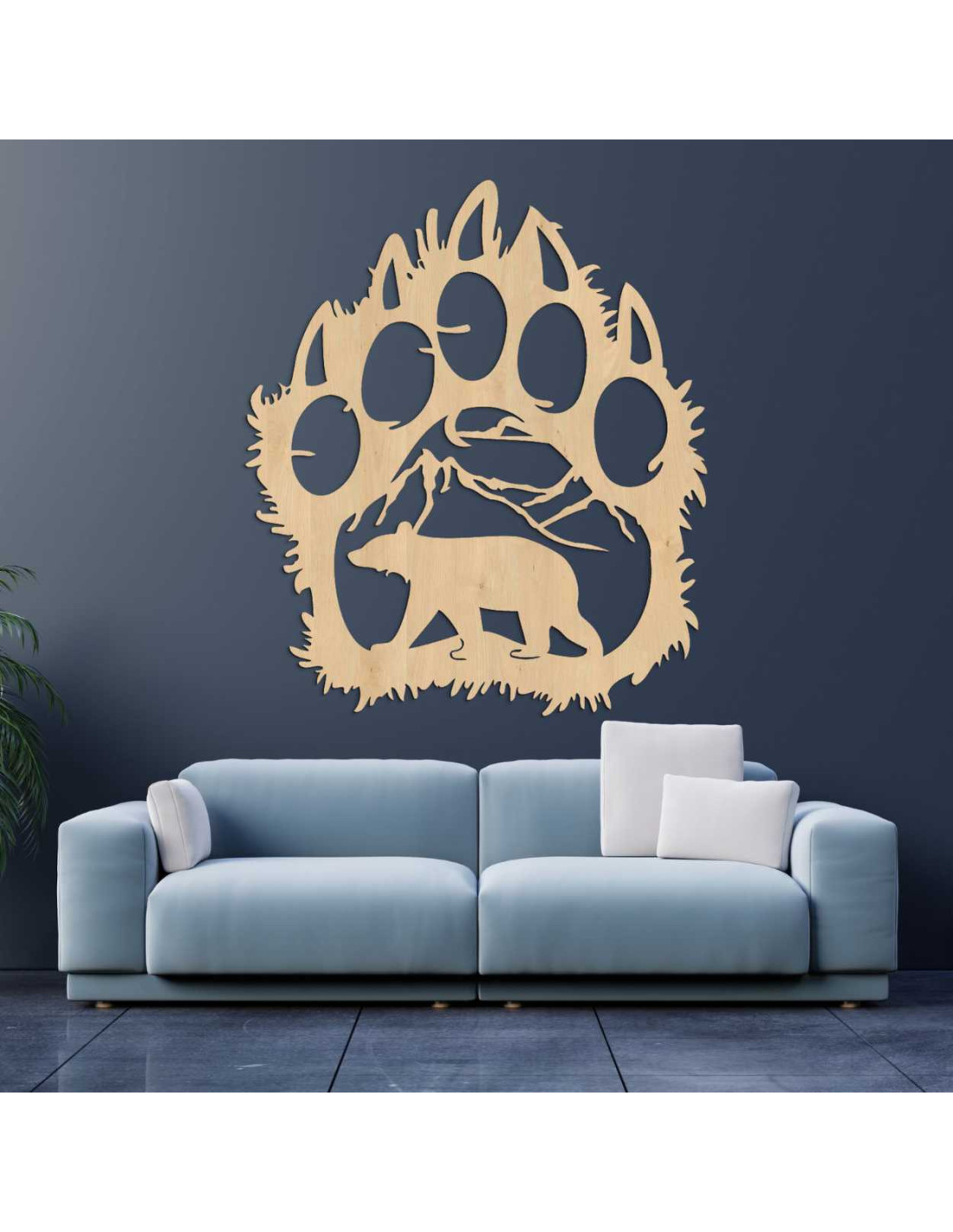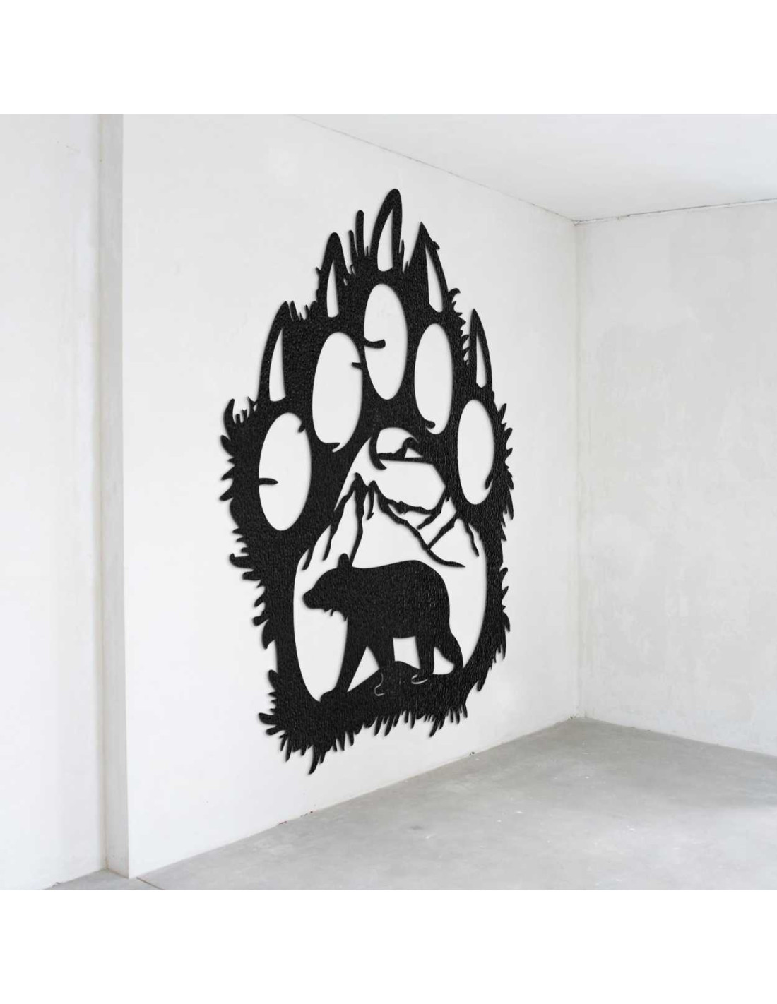 Dynamická silueta medvedej stopy doplnená o prírodné scény prináša do priestoru charakter a hĺbku.