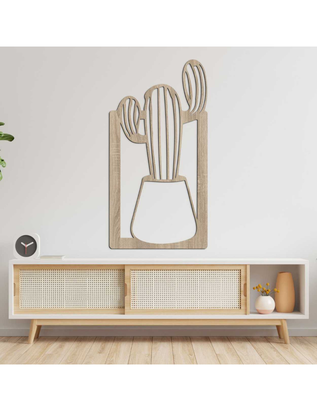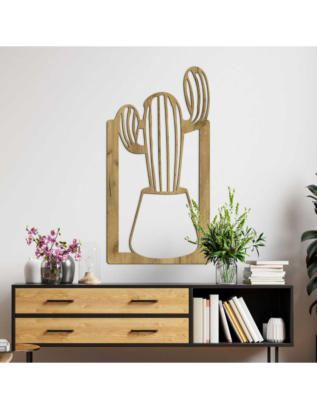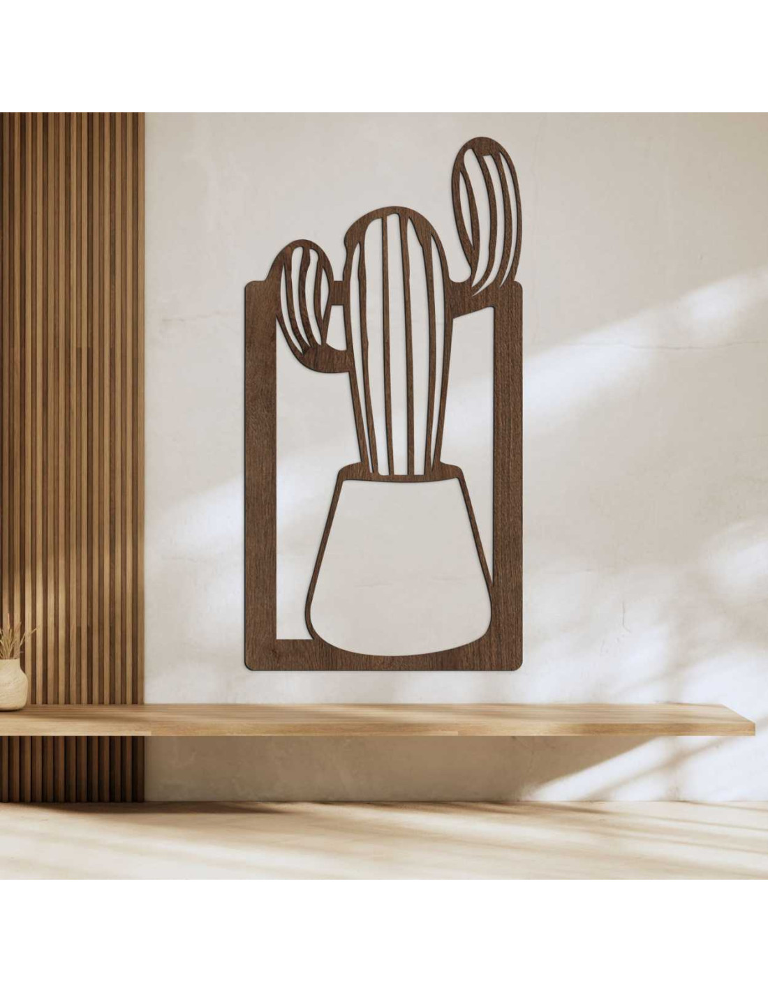 SentopTento drevený obraz je výnimočná nástenna dekorácia s motívom kaktusu v kvetináči.