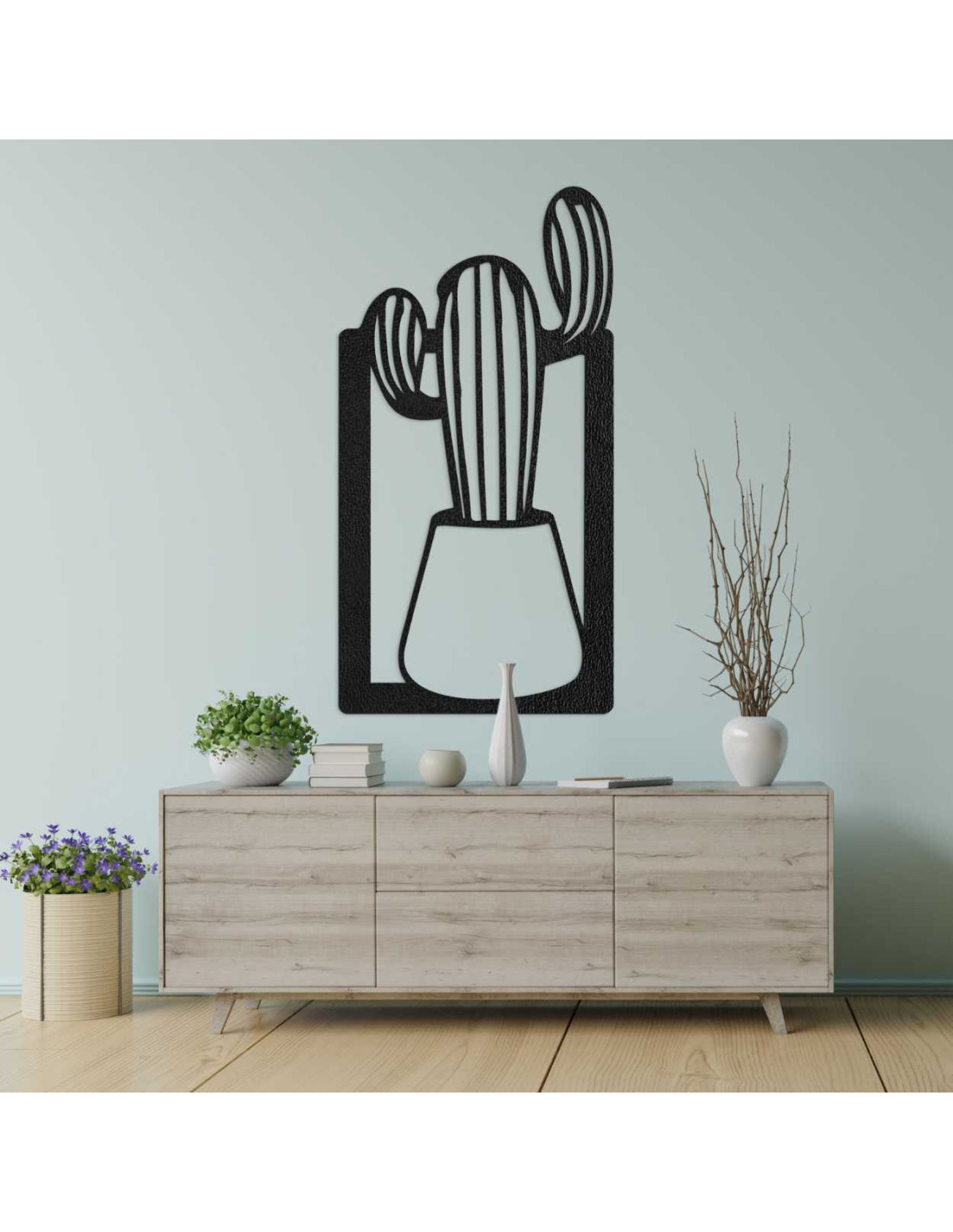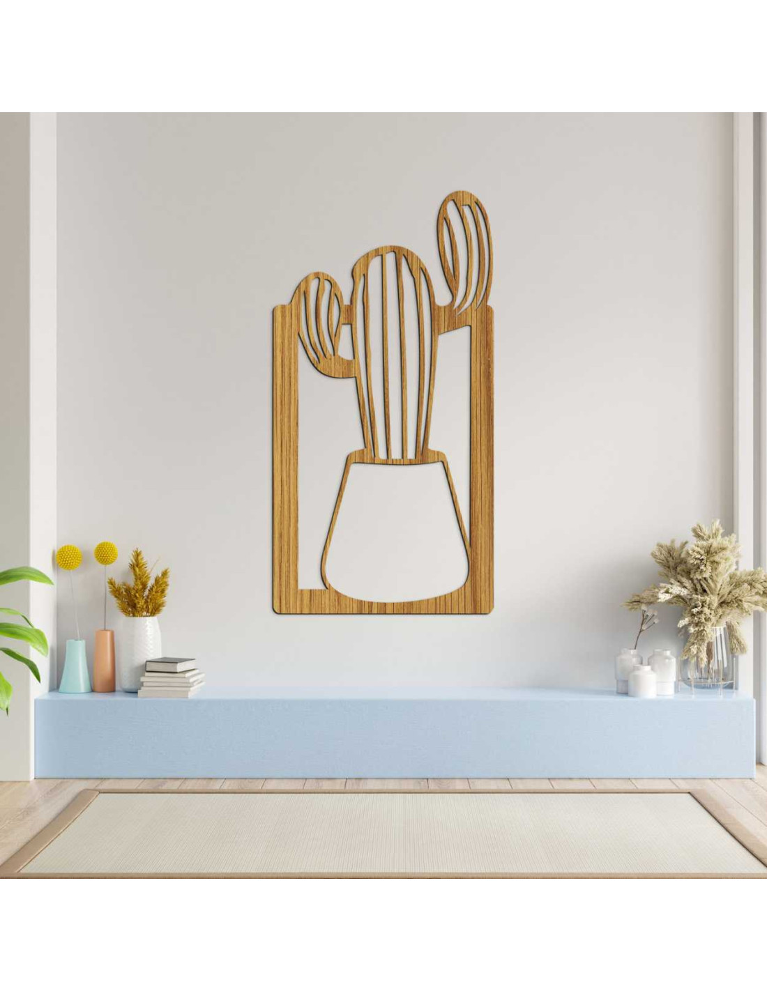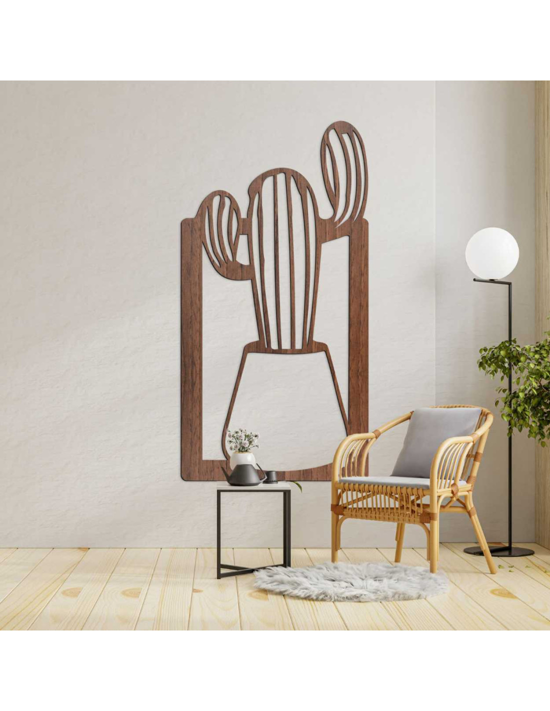 SentopTento drevený obraz je výnimočná nástenna dekorácia s motívom kaktusu v kvetináči.