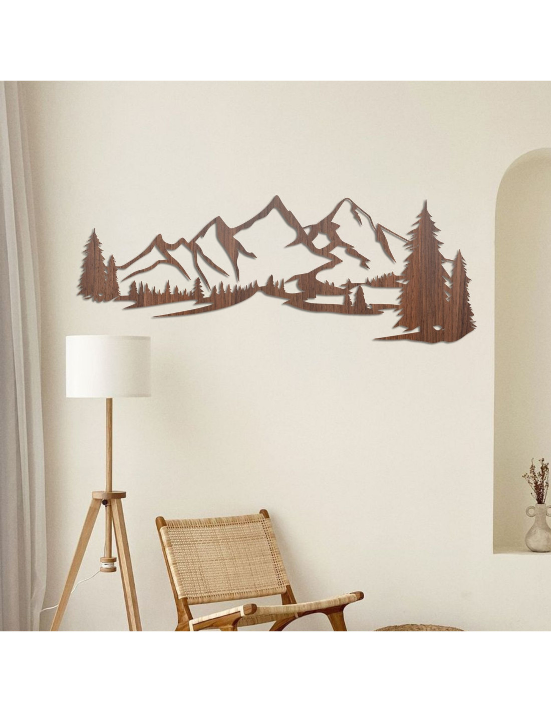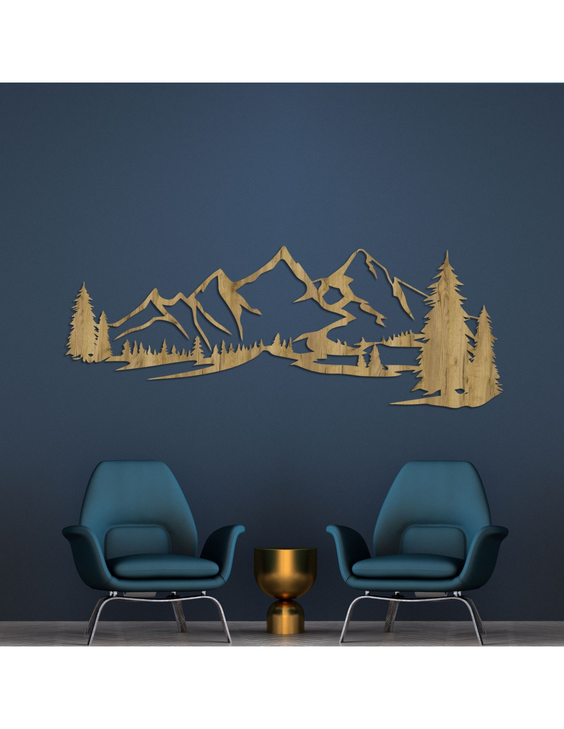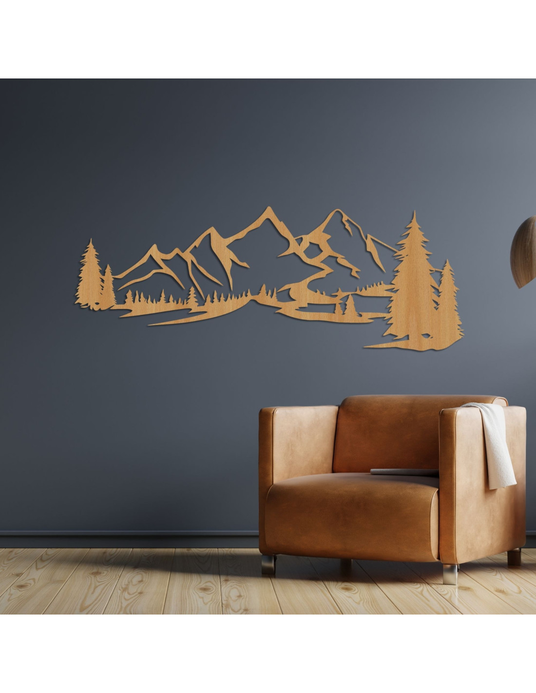 Drevená dekorácia na stenu s motívom horskej krajiny je moderným a elegantným doplnkom, ktorý prinesie do každého interiéru pokojný dotyk prírody.