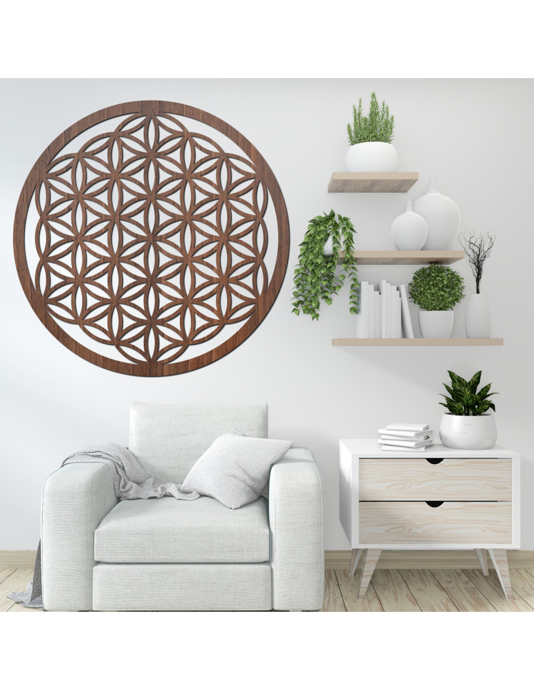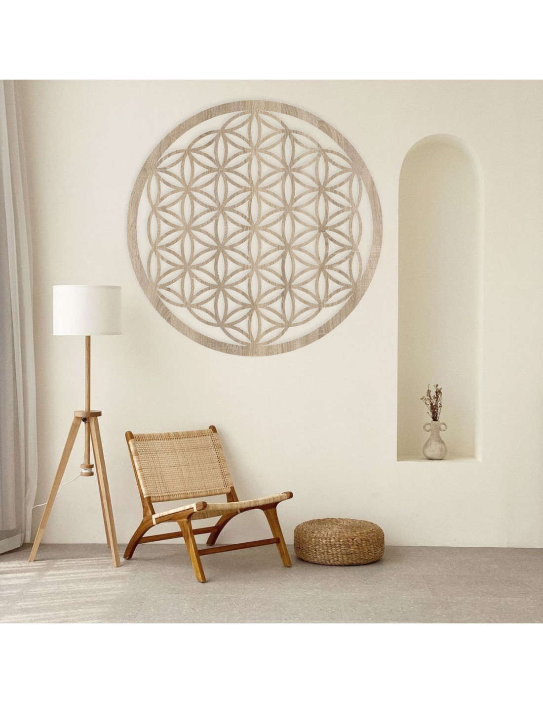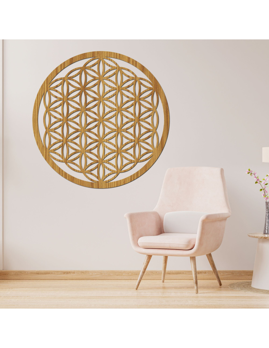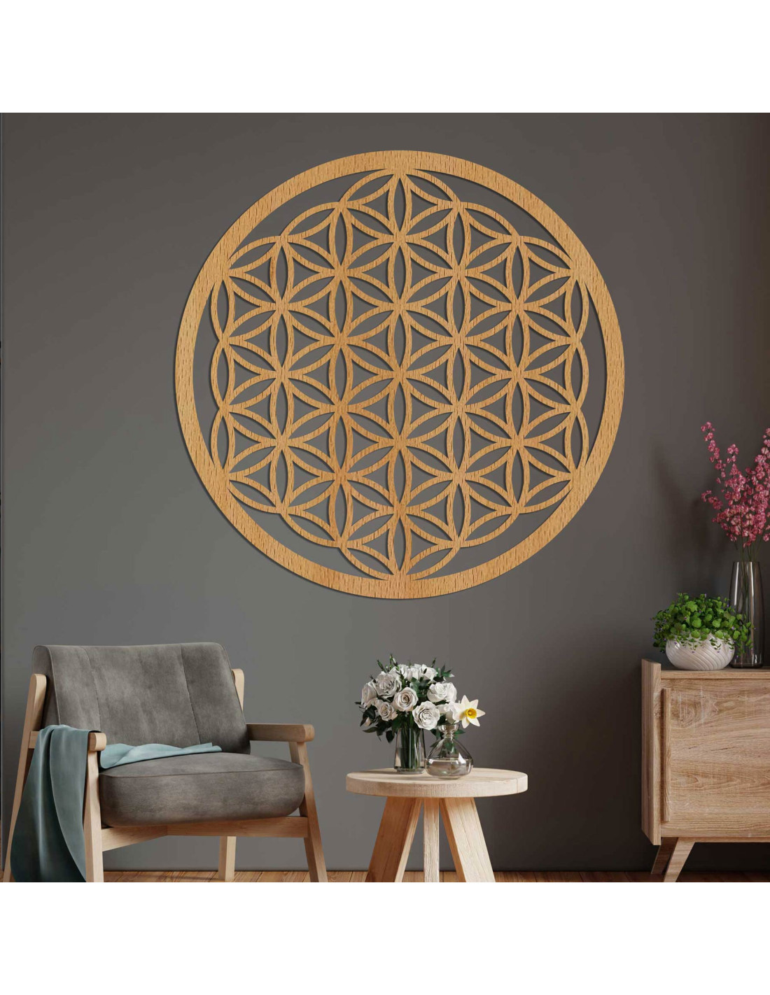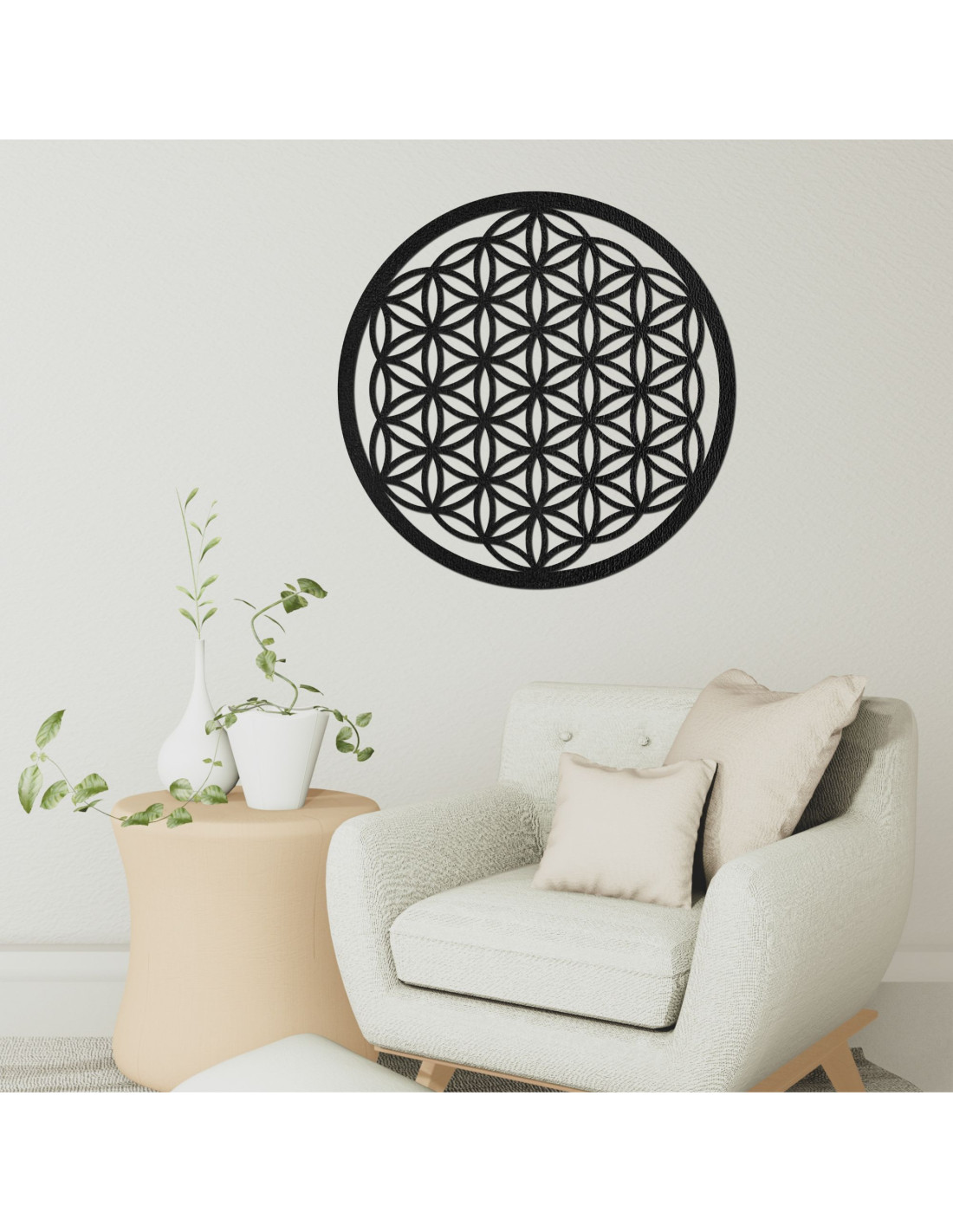Dizajn tejto mandaly je inšpirovaný prastarým symbolom života, ktorý sa vyskytuje v rôznych kultúrach a predstavuje základné princípy vesmíru a života a verí sa, že má schopnosť zlepšovať energiu priestoru a podporovať vnútorný pokoj.Kvet života je symbol, ktorý predstavuje harmóniu, jednotu a prepojenosť všetkého, čo nás obklopuje.