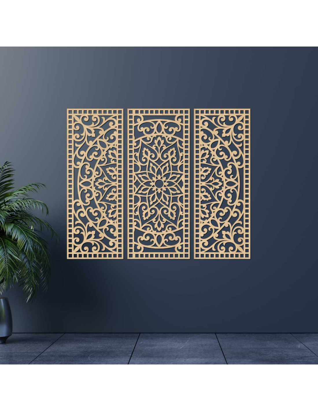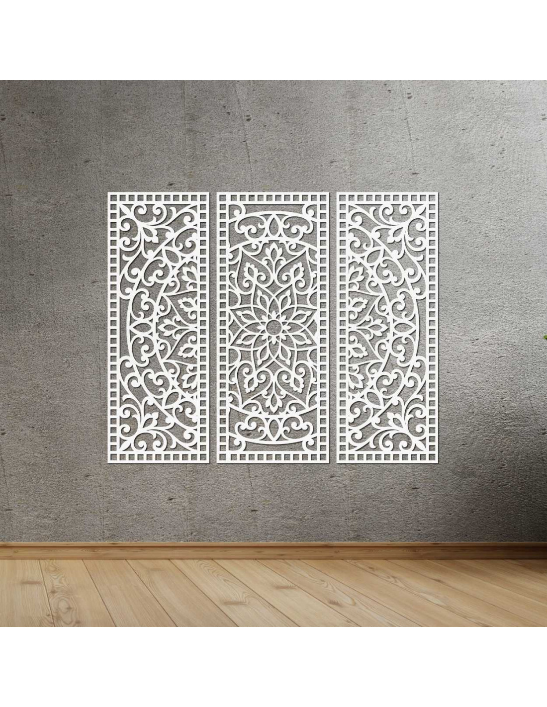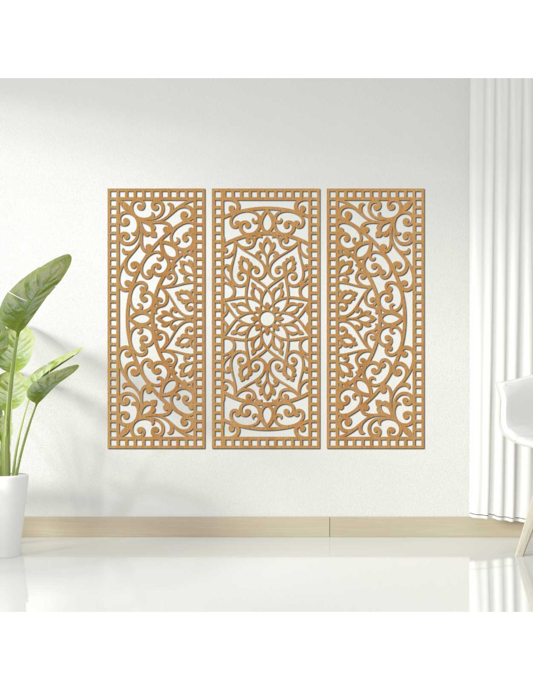 Elegancia, rovnováha a presnosť ručnej práce sa spájajú v jedinečnom umeleckom diele Kvetinová mandala z dreva – boho 3‑dielna nástenná dekorácia. Jemne vyrezávané detaily a harmonická kompozícia troch panelov vytvárajú dokonalú rovnováhu medzi prírodou a geometriou, čím premenia akýkoľvek priestor na miesto pokoja a inšpirácie.