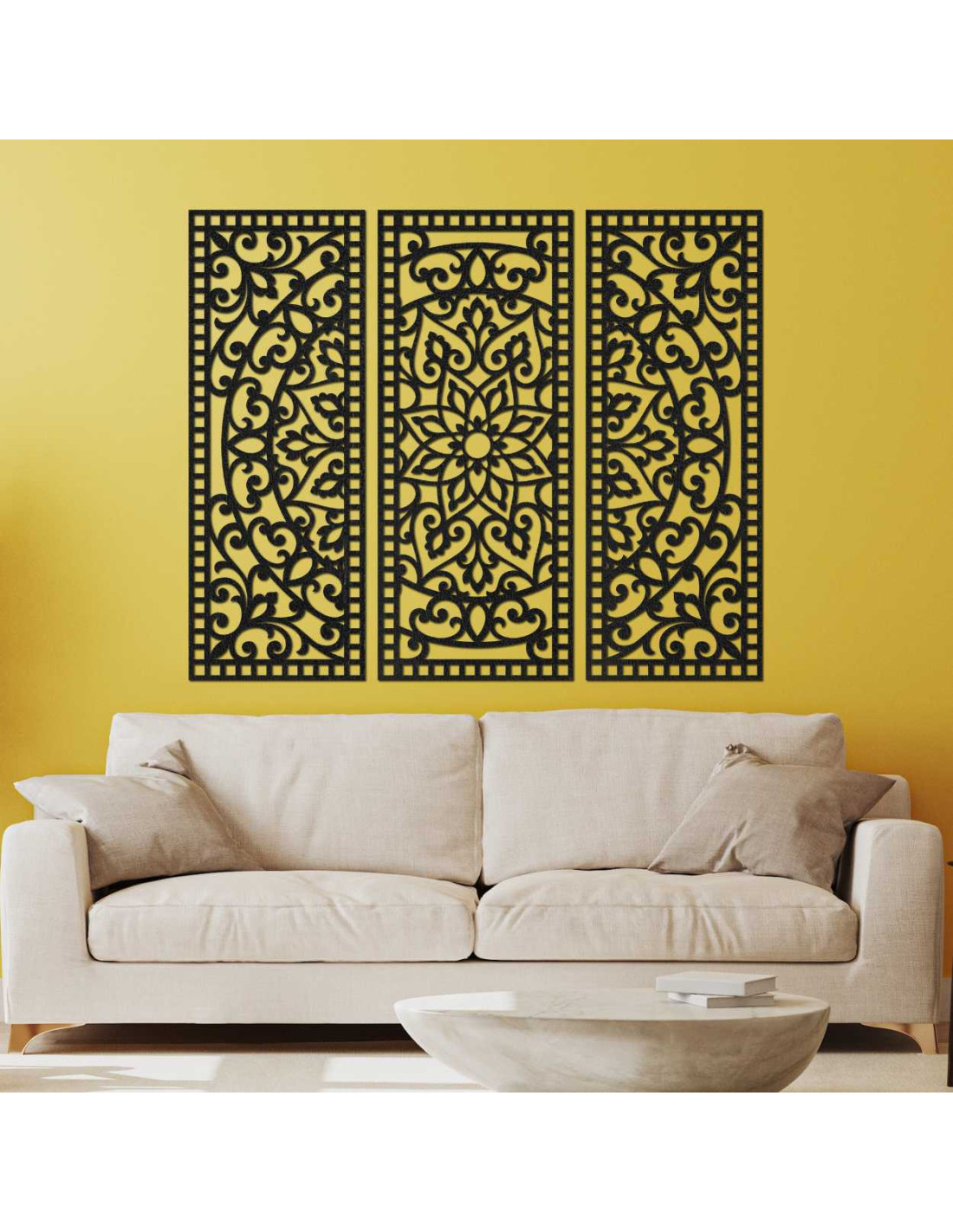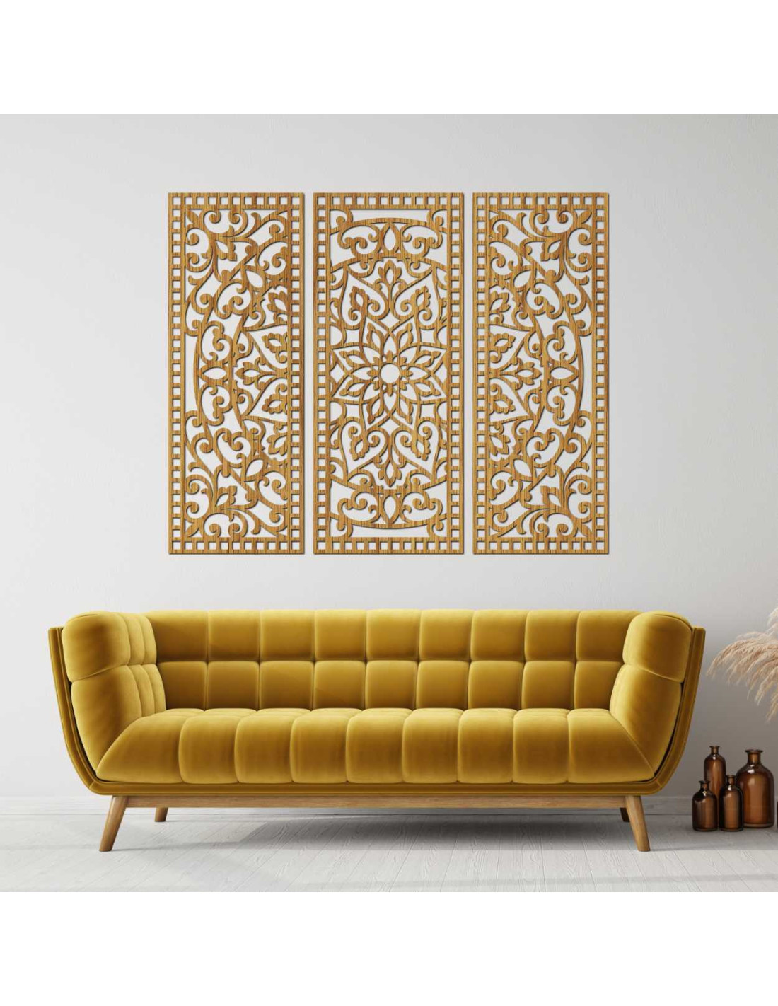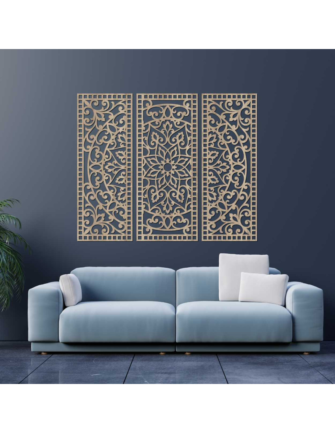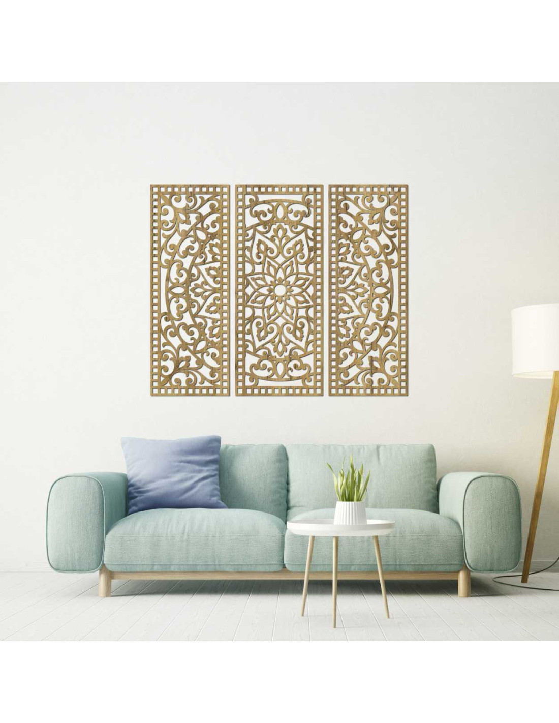 Elegancia, rovnováha a presnosť ručnej práce sa spájajú v jedinečnom umeleckom diele Kvetinová mandala z dreva – boho 3‑dielna nástenná dekorácia. Jemne vyrezávané detaily a harmonická kompozícia troch panelov vytvárajú dokonalú rovnováhu medzi prírodou a geometriou, čím premenia akýkoľvek priestor na miesto pokoja a inšpirácie.