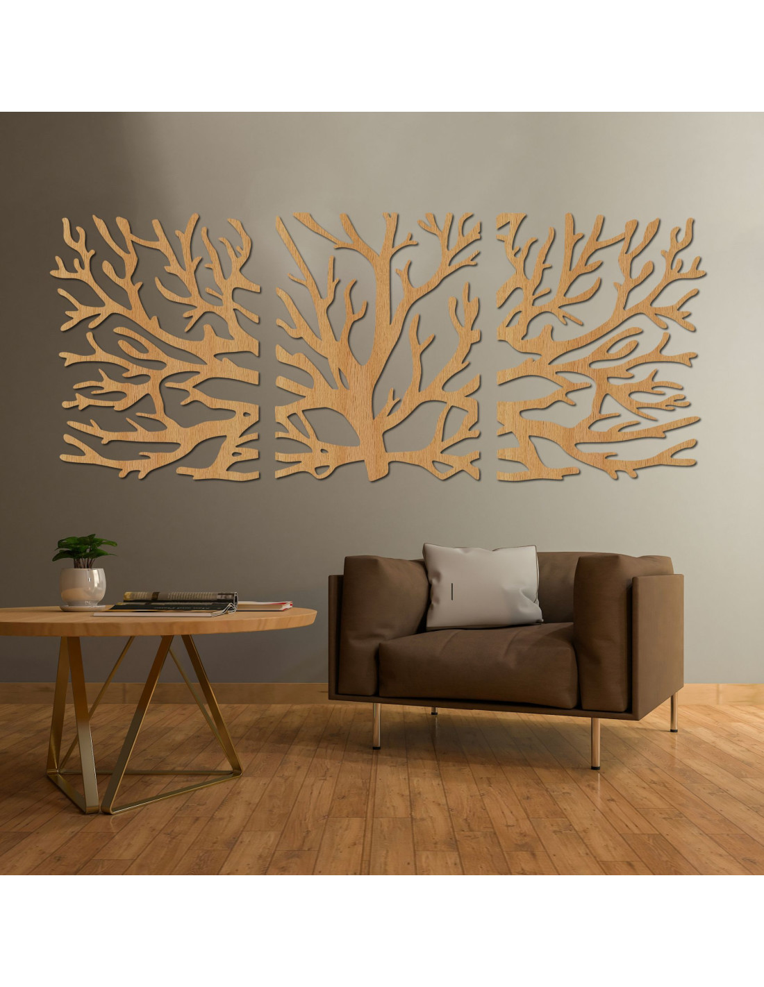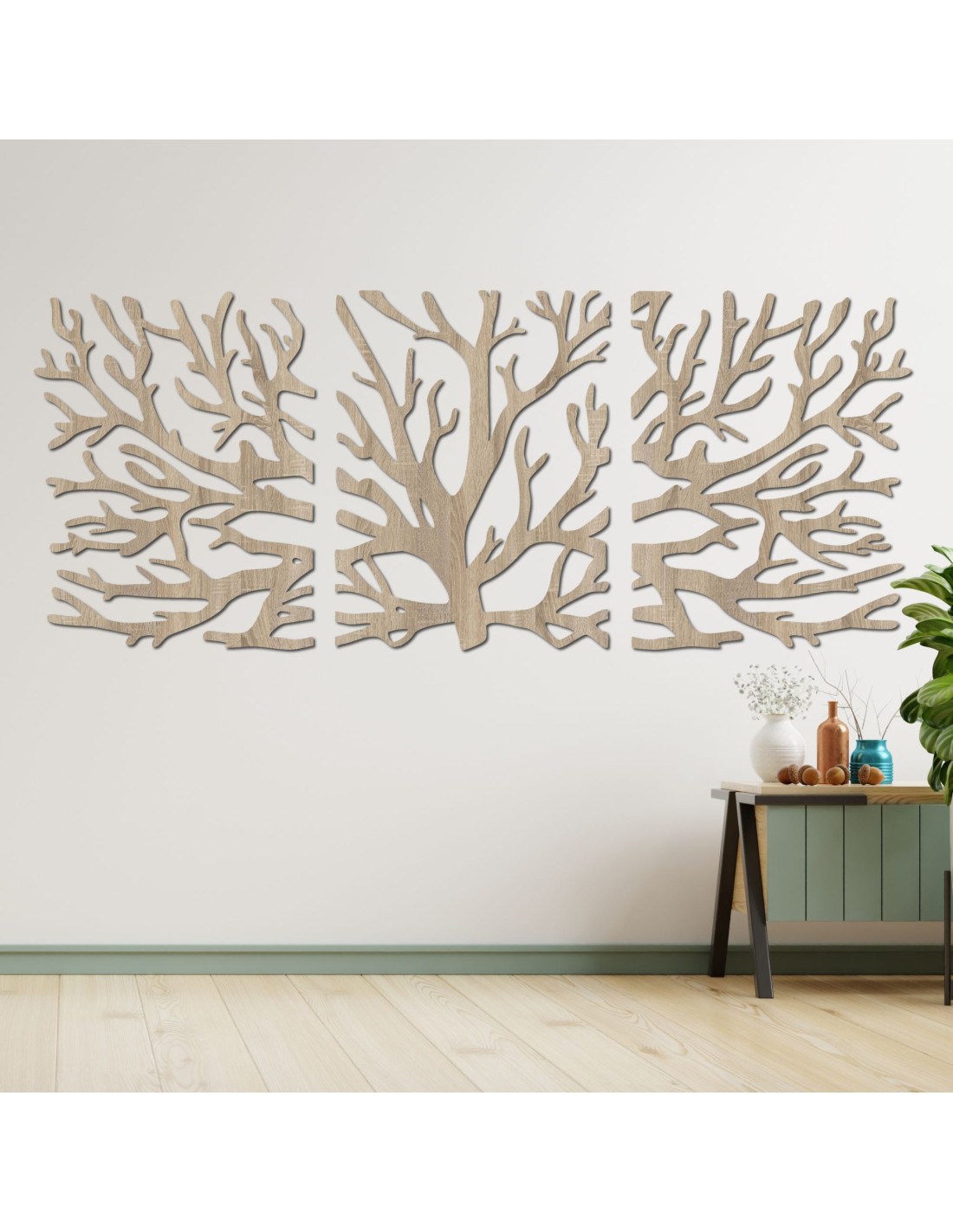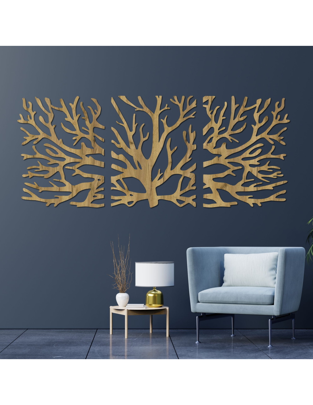 Drevený trojdielny obraz Strom – elegancia a harmónia pre váš interiér