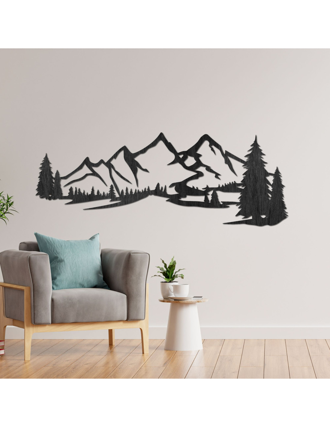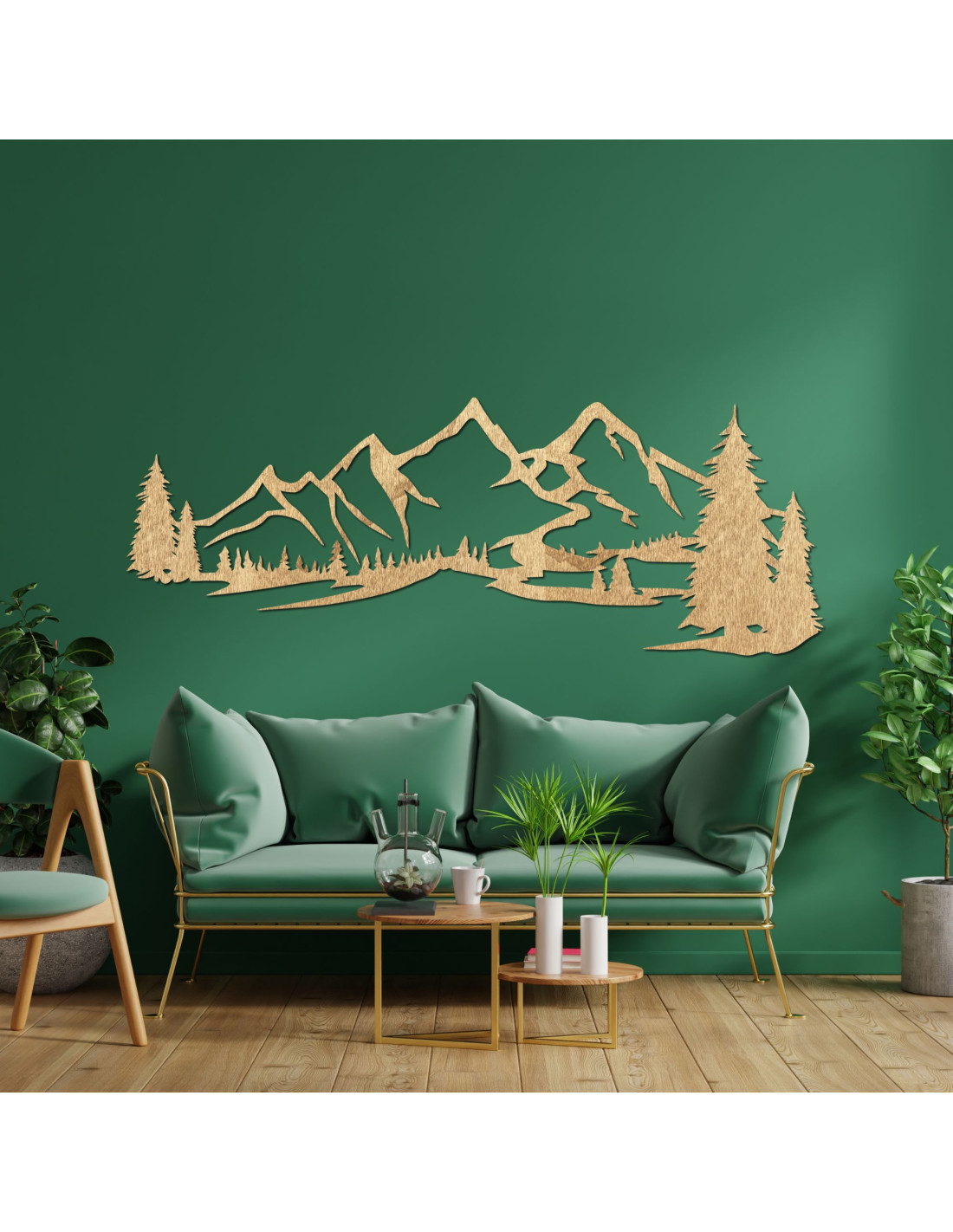 Drevené nástenné umenie s motívom hory, veľká krajina lesa – dekorácia do interiéru - TRARTE