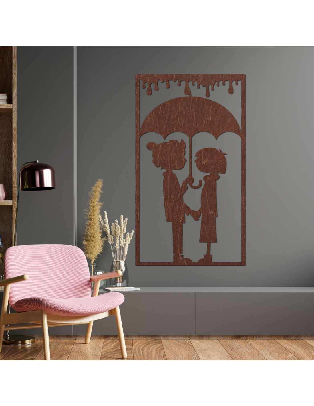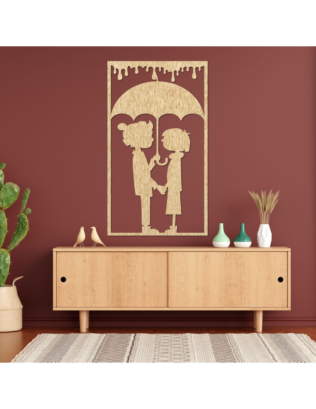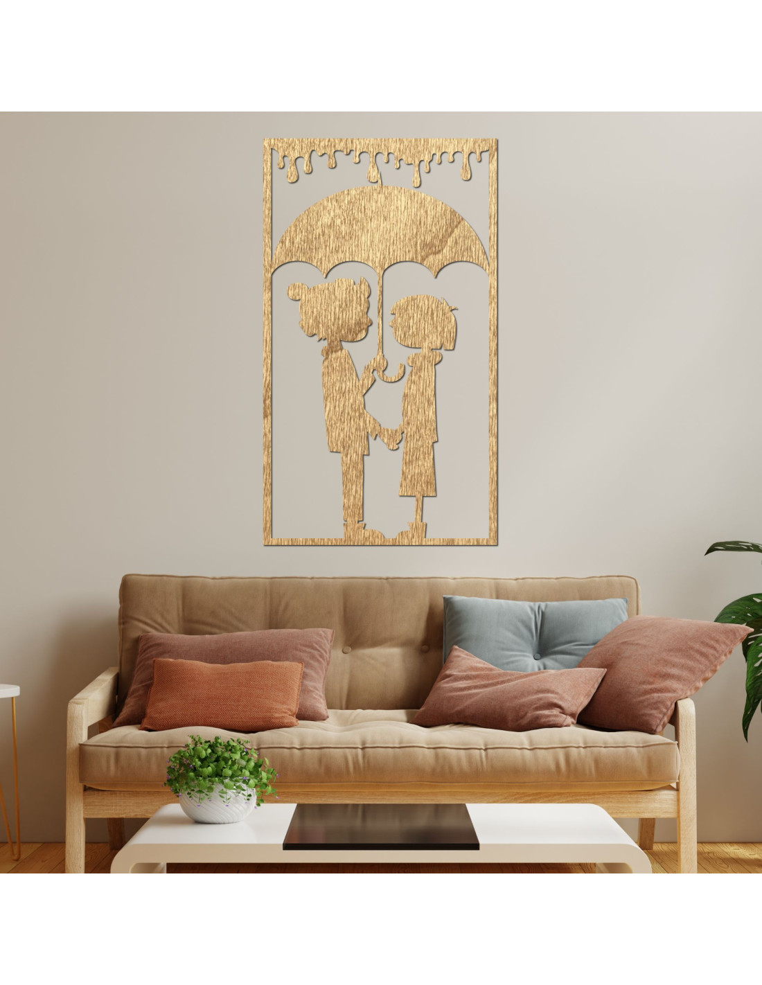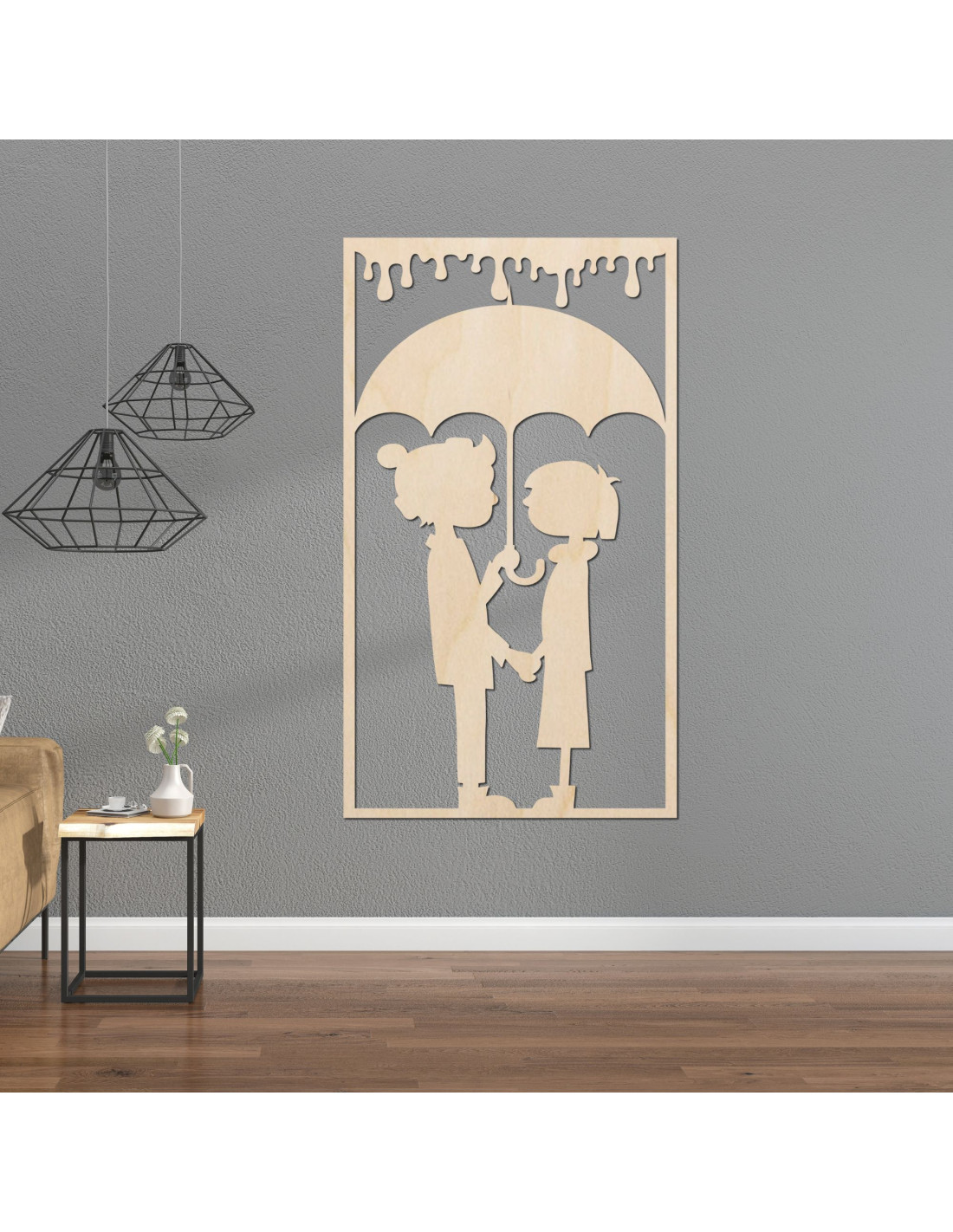 Elegantná drevená dekorácia s motívom postáv pod dáždnikom spája jednoduchosť so silným emocionálnym odkazom. Táto nástenná dekorácia je vhodná na vyjadrenie citov ako láska, podpora či spolupatričnosť. Prírodný materiál navyše prináša do priestoru pocit tepla a autenticity. Hodí sa do moderných aj rustikálnych interiérov, kde vytvorí harmonickú atmosféru.